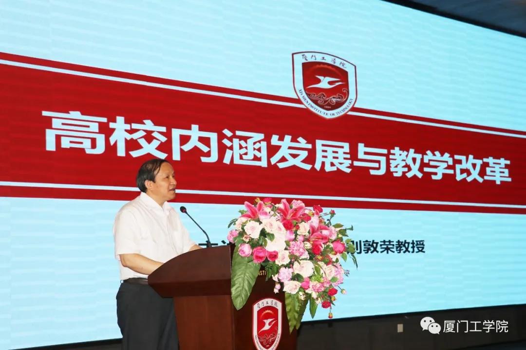 6月9日,厦门大学教育研究院院长别敦荣教授莅临厦门工学院参观交流,并为全体教师带来一场题为《高校内涵发展与教学改革》的专题讲座。学校董事长李德文先生,校长田东平教授,评估顾问潘世墨教授,副董事长李雄虎先生,副校长苏涵教授、冯良贵教授、李咏梅教授陪同并出席了本场讲座。