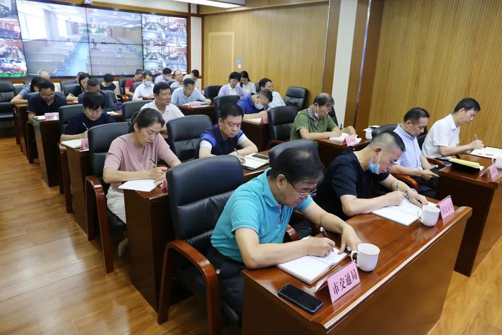 视频会议主会场设在市教育局,市教育局、市公安局、人社局、交通局、卫健委等部门分管领导和市教育局机关相关处室负责人在主会场参加会议;各区及各在校高校、直属中小学校设立分会场。