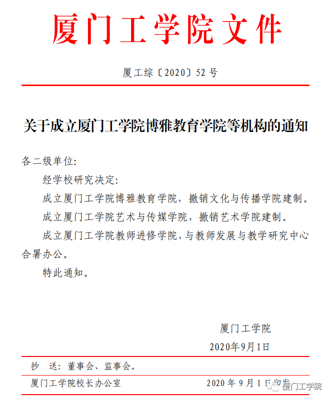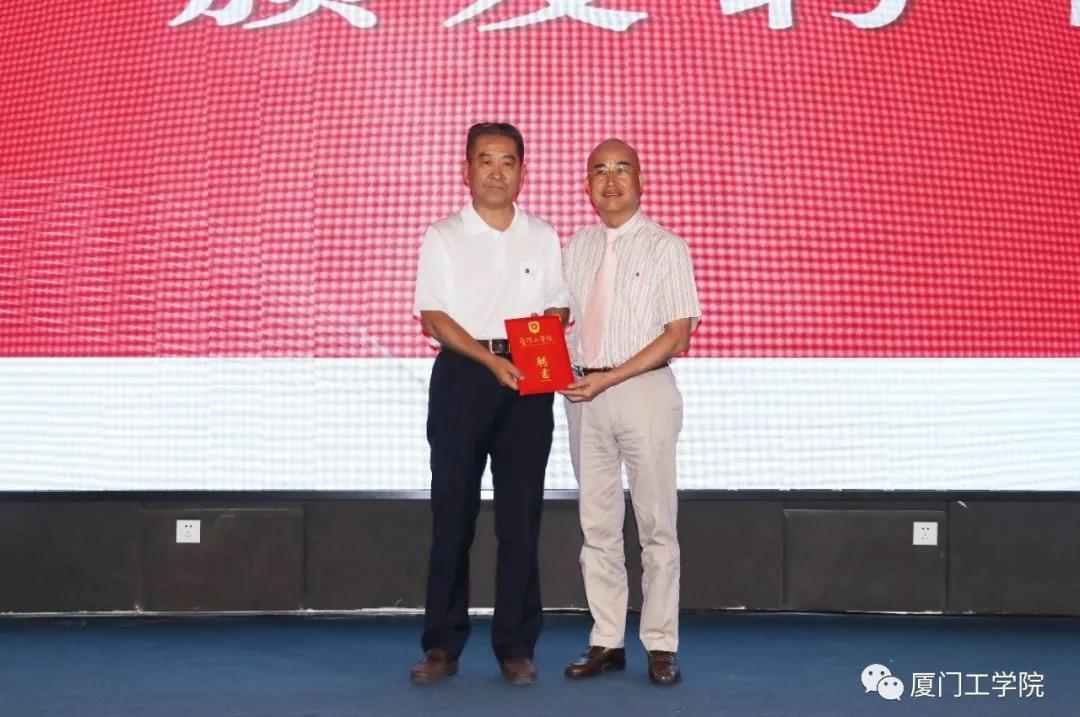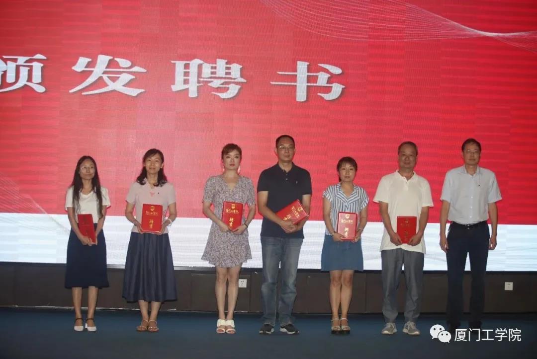 李咏梅副校长宣读文件《关于成立厦门工学院博雅教育学院等机构的通知》《关于苏涵等职务任免的通知》《关于王人恩等职务任免的通知》