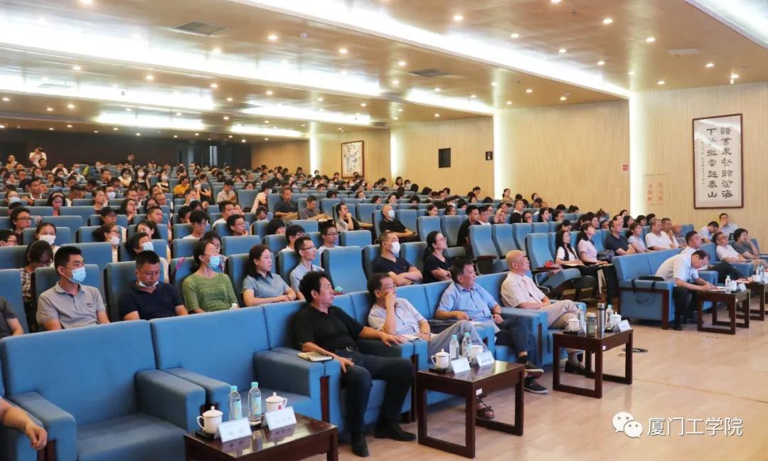 9月1日,厦门工学院在图书馆一楼报告厅举行2020-2021学年第一学期第一次全体教职工大会。董事长李德文先生,校长田东平教授,副董事长李雄虎先生,副校长苏涵教授、李咏梅教授、冯良贵教授出席,全体教职工参加了本次大会。