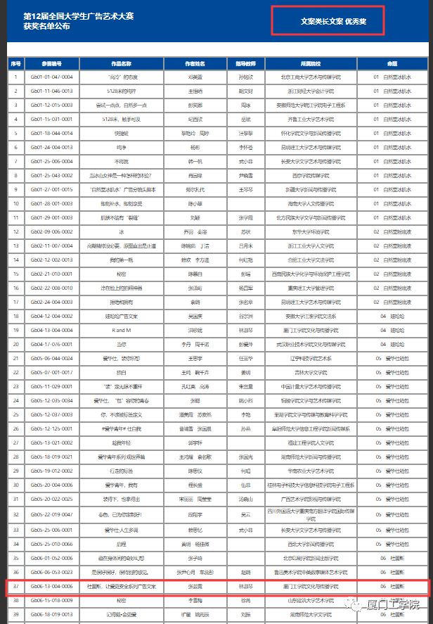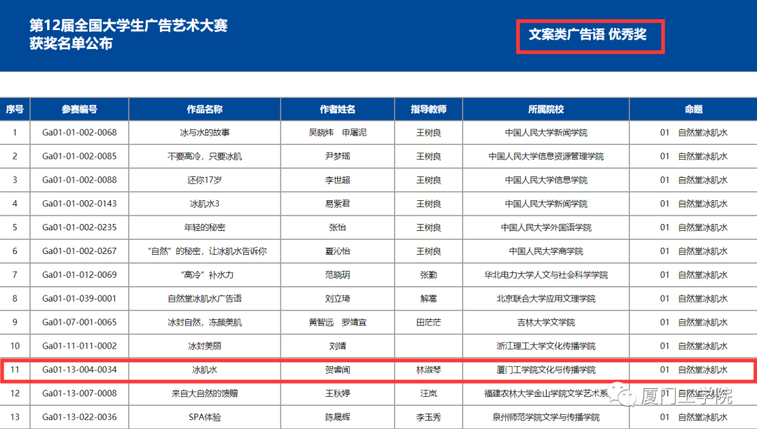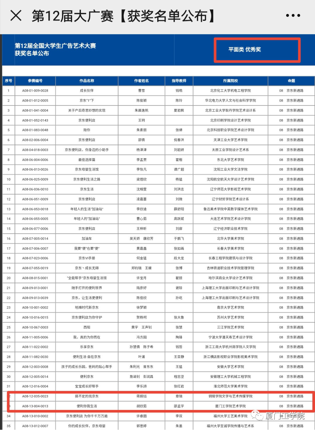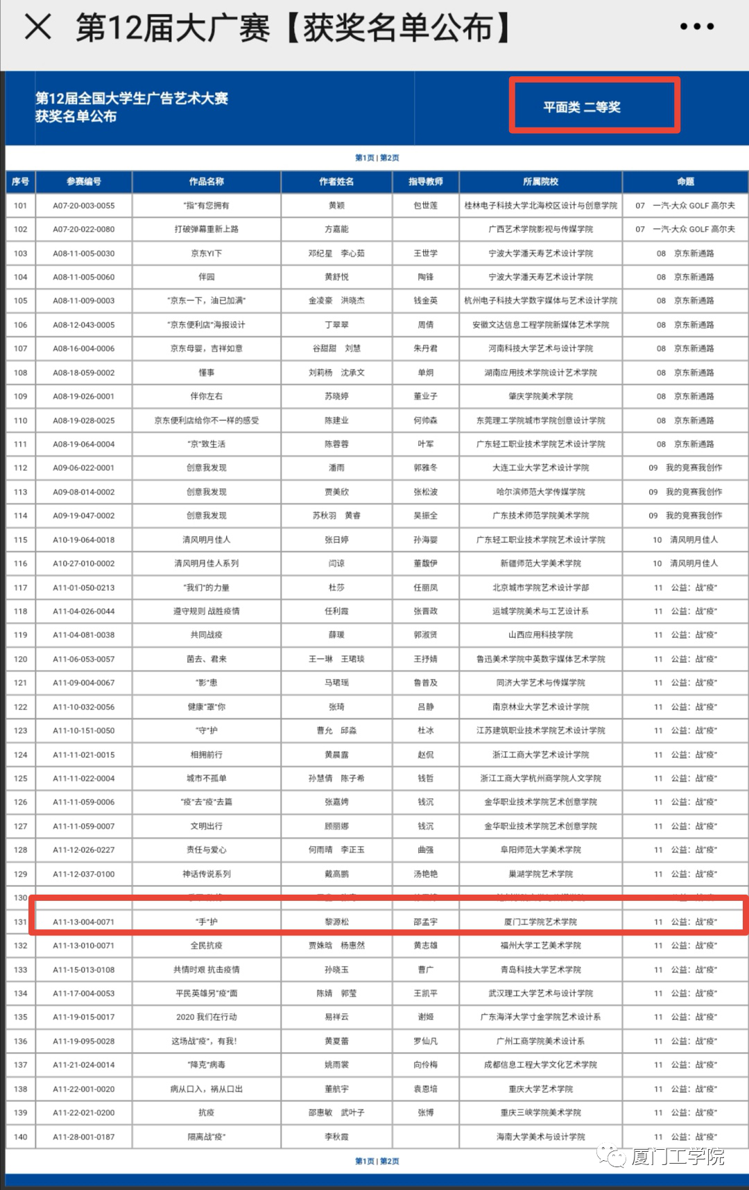 由教育部高等教育司指导,中国高等教育学会、教育部高等学校新闻传播学类专业教学指导委员会共同主办的“中国大学生好创意”第12届全国大学生广告艺术大赛全国总评审工作已于8月16日圆满结束。我院师生斩获颇丰。