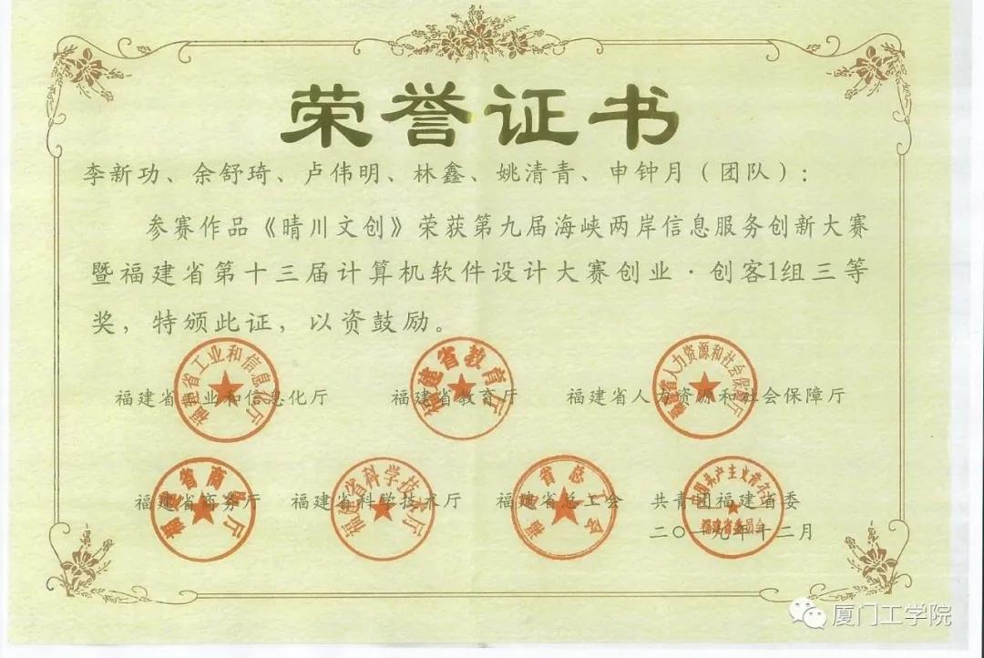 应老师所带的学生团队,共获得各类各级别专业竞赛奖项60余项,其中,国际奖项21个,国家奖项7个;参加各级大学生创新创业训练项目立项11项,其中国家级4项、省级7项,所带的每一个学生项目,均能斩获不同级别的奖项,落到实处;应老师骄傲的说“荣誉不属于我个人,而是属于我的学生们,属于厦门工学院”。