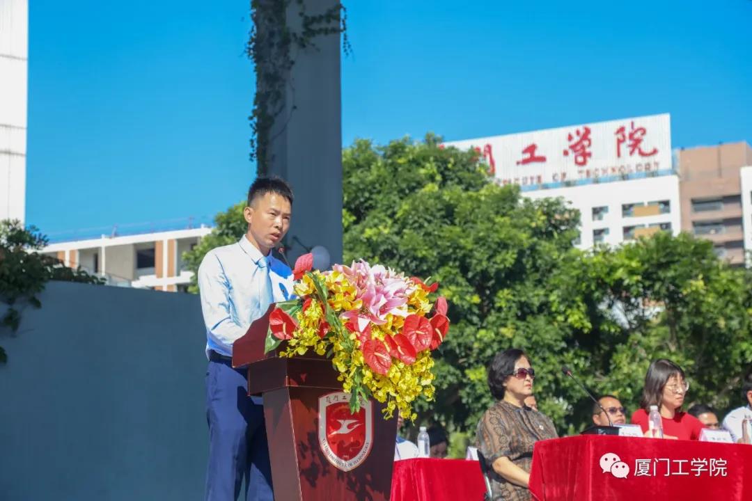 潘可贤老师向新生介绍了厦门工学院良好的生活环境,浓厚的文化氛围,丰富的社团活动。与此同时,他希望同学们可以尽快的适应大学生活,真正的学会独立、自律,自己积极面对生活中、学习上的问题,充分利用好这四年的大学时光,成为更好的自己。