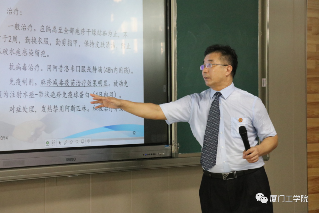 为进一步做好常态化疫情防控工作,扎实开展常态化卫生防护培训,根据教育集团(2020)12号《关于做好集团各成员单位新冠肺炎疫情防控知识和技能培训工作的通知》要求,10月14日,德文教育集团资产管理模块依托厦门工学院本部优势,邀请校医院刁广平主任开展常态化卫生防控培训工作。培训在正心120 智慧教室进行。教育集团各单位全体医务工作者、保育员、书院及社区导师、保洁及保卫管理人员等一线防疫人员参加此次培训。