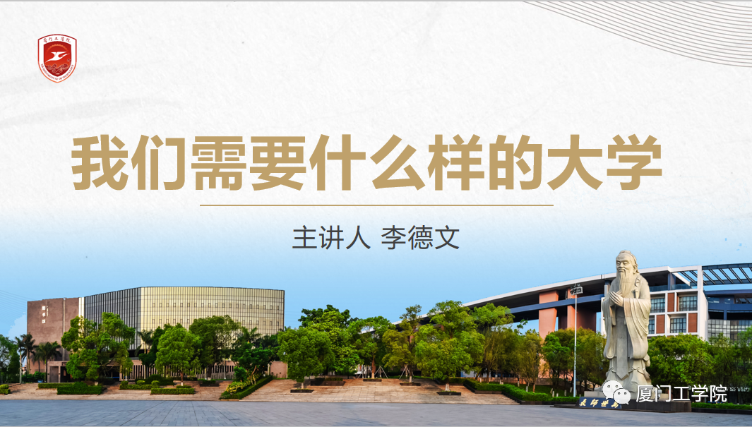 最后,李德文董事长对心中的好大学标准进行了概况:一、校园建设像厦门工学院公园式的校园,现代设施设备齐全,服务周到,愉悦师生。二、老师像孔子那样,因材施教,学而不厌,诲人不倦,为人师表。三、学生像颜回那样“一箪食,一瓢饮,在陋巷,人不堪其忧,回也不改其乐。”淡泊名利,一心追求学问,追求仁德的崇高境界。
