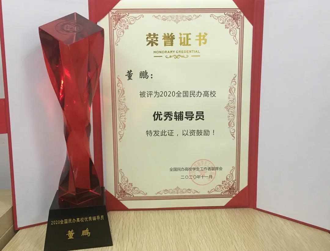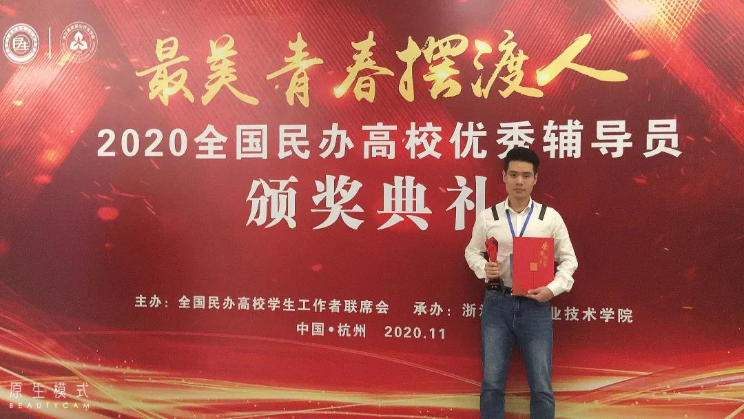 11月20日-23日,第六届全国民办高校辅导员工作高峰论坛在杭州隆重举行,论坛由全国民办高校学生工作者联席会主办,来自全国215所民办高校的430余名学生工作者参加论坛。我校专职导师董鹏老师荣获2020年“全国民办高校优秀辅导员”荣誉称号。
