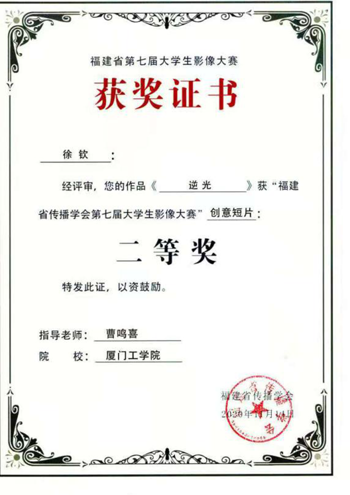 创意短片 | 逆光 | 徐钦 | 曹鸣喜 | 厦门工学院 | 二等奖 |