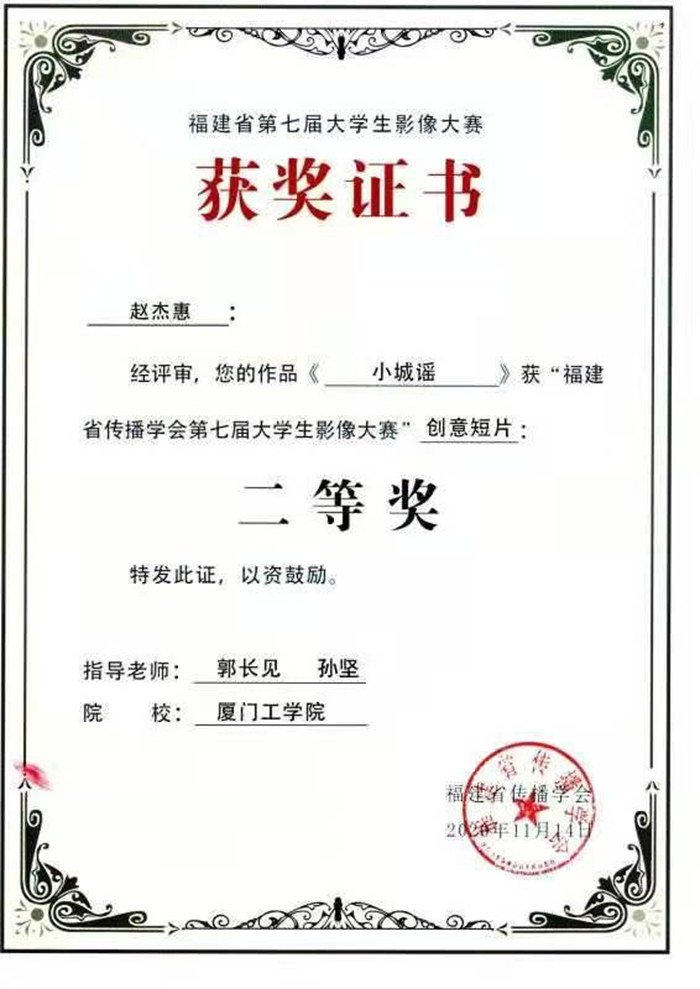 创意短片 | 小城谣 | 赵杰惠 | 郭长见、孙坚 | 厦门工学院 | 二等奖 |
