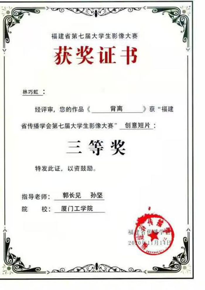 创意短片 | 背离 | 林巧虹 | 郭长见、孙坚 | 厦门工学院 | 三等奖 |