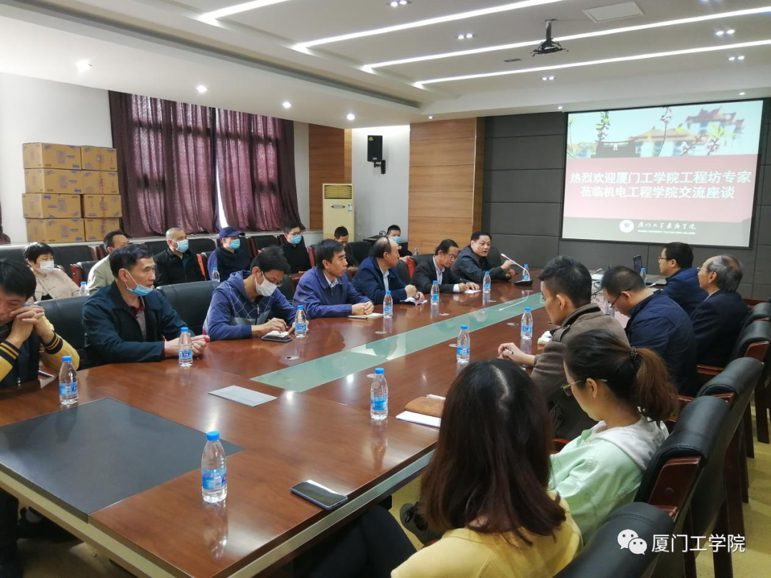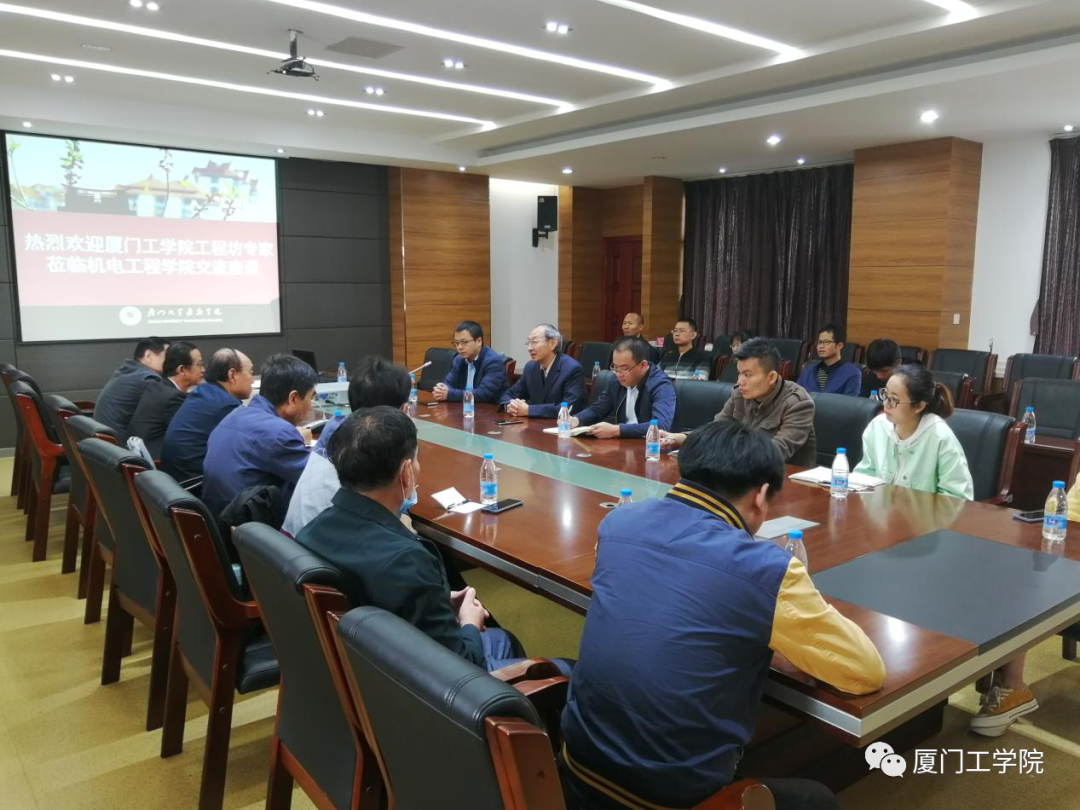 双方先在嘉庚学院机电学院会议室进行了座谈。座谈会伊始,机电学院方亮院长对工程坊人员的到访表示欢迎。随后,双方领导各自介绍了本部门的基本情况,并对学院与部门的制度、实习实训工种、老师及实验员的管理办法、实验场所安全等多方面问题展开深入探讨。