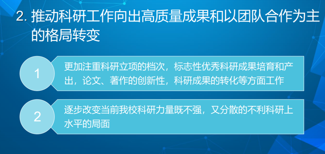 针对存在的差距和不足,田东平校长指出,我们必须清醒地认识到,建设特色鲜明的高水平应用型大学,是需要有良好的科学研究工作作为支撑的。它不仅是反映学校办学水平的最重要标志之一,而且关系着人才培养的质量和层次,为了学校更好发展,我们必须要做好科研工作。