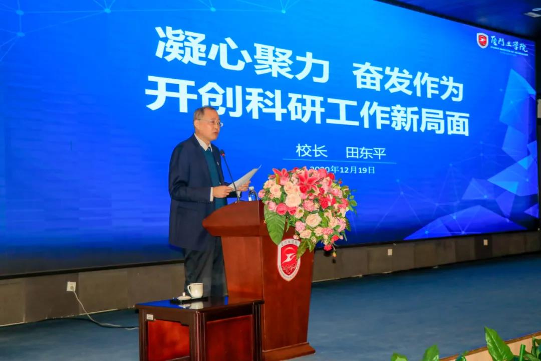 校长田东平教授作《凝心聚力,奋发作为,开创科研工作新局面》主题报告。 田东平校长主要从“厦门工学院为什么要开展科研工作,厦门工学院科研现状与问题,厦门工学院如何开展科研工作”三方面给大家进行了报告。