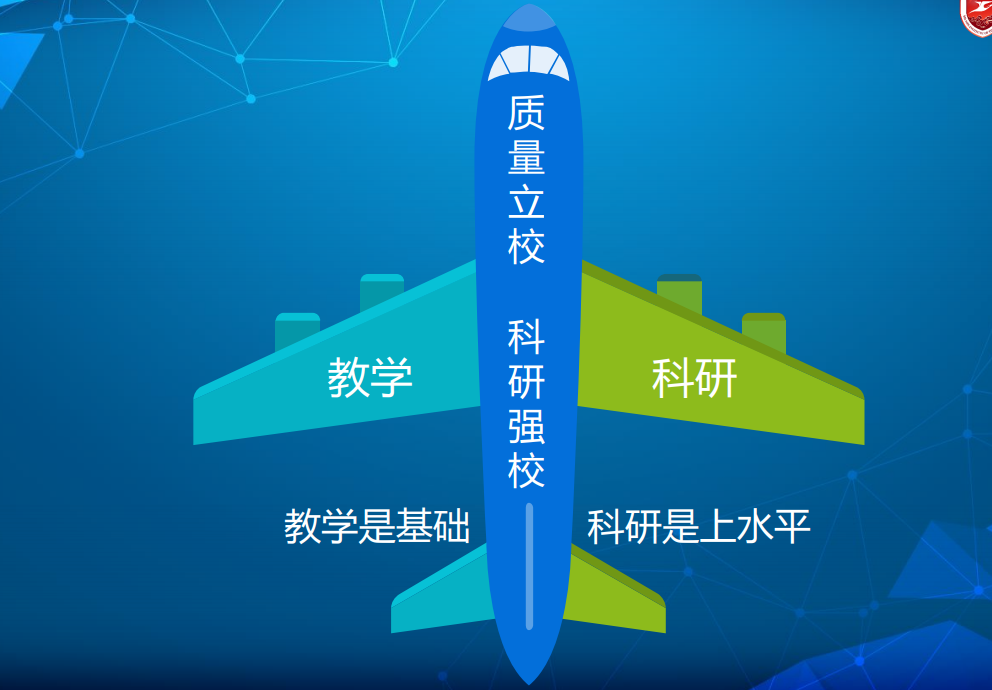 田东平校长指出,教学和科研就像高等学校的二只翅膀,缺一不可。只有具有既有人才培养高质量的教学,同时也具有不断创新高水平的科学研究的高校才能像大鹏一样展翅高飞,成为一所优秀的大学,成为一所名校,才能更好的服务社会。