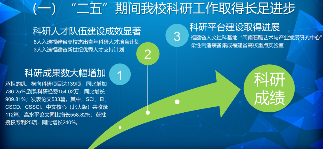 主要体现在一是科研成果数大幅增加;二是科研人才队伍建设成效显著;三是科研平台建设取得进展。