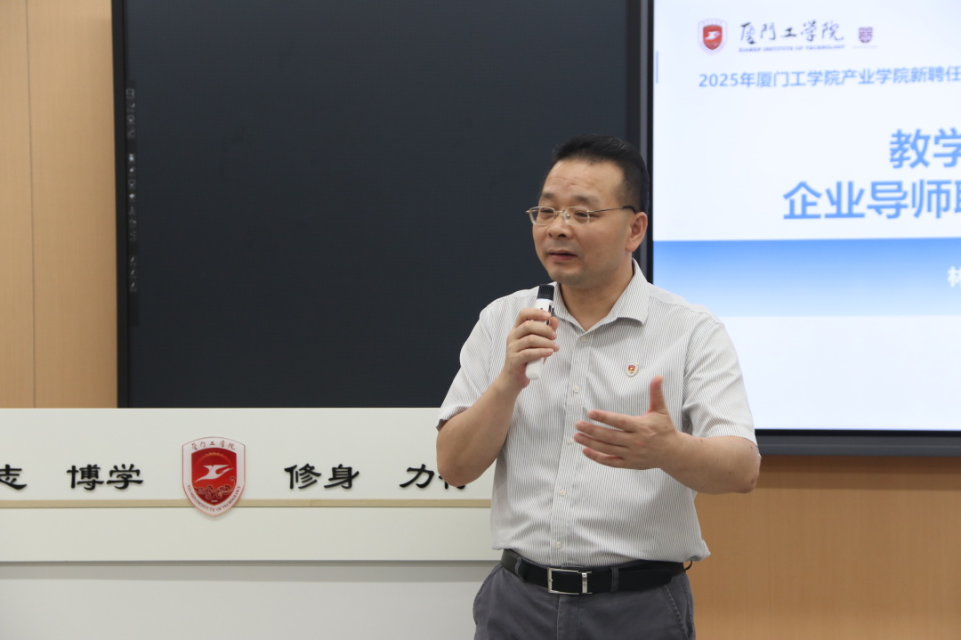 教师进修学院应志远院长主持开场。人力资源处林家锋处长代表学校向加入厦门工学院育人团队的全体企业导师致以诚挚欢迎,并就产业学院设置的战略意义进行详细阐述,向全体企业导师传达学校的教育教学职责与师德师风要求。