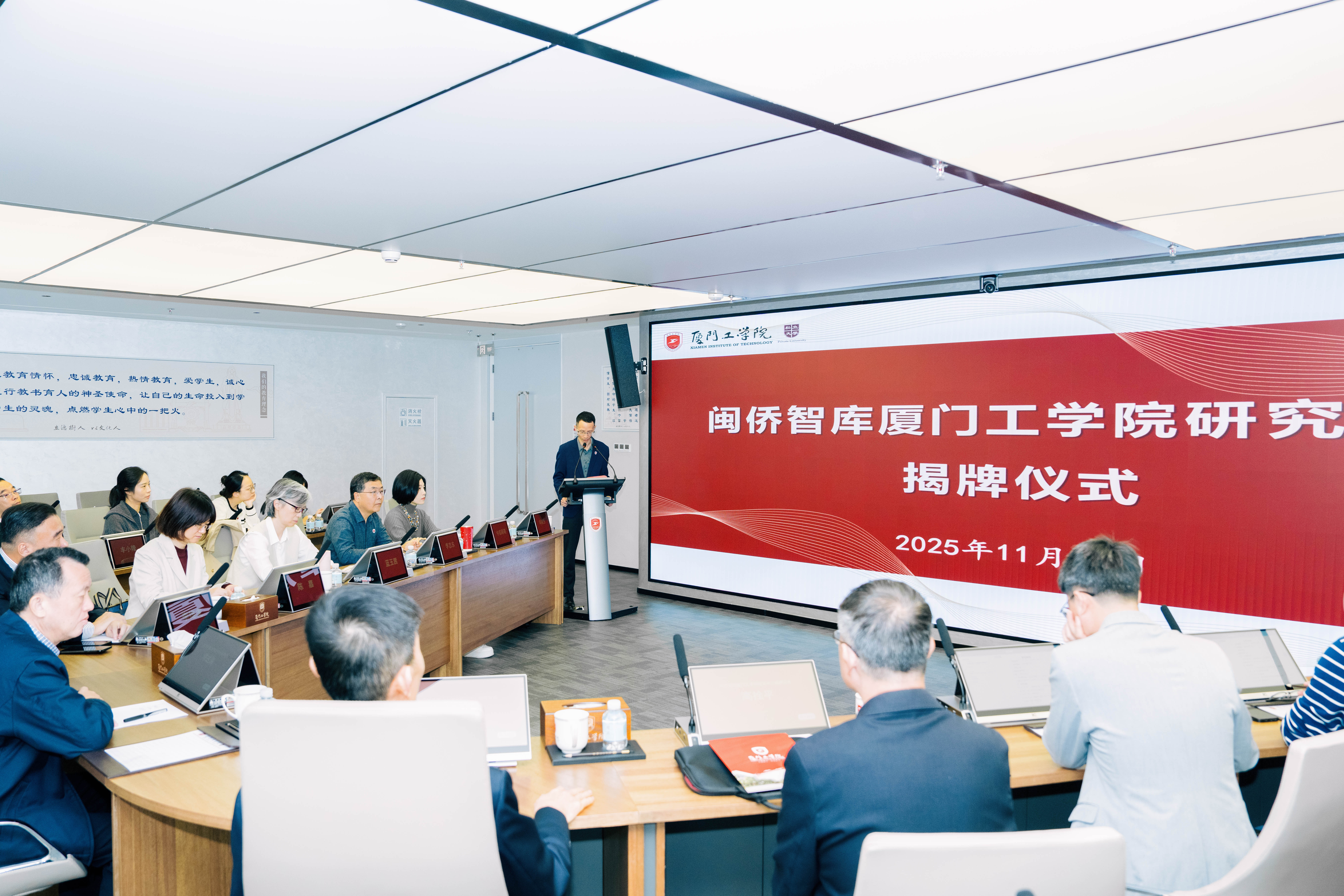 启智库新程,谱发展华章 座谈交流后,举行了简朴而隆重的“闽侨智库厦门工学院研究中心”揭牌仪式。陈主席和李雄虎副董事长、执行校长共同为中心揭牌。该中心作为闽侨智库的重要分支,将依托我校资源平台,聚焦地方经济发展、教育文化创新及侨务政策研究等领域,汇聚海内外侨界精英智慧,打造一个高层次的建言献策与决策咨询平台。中心聚焦海外华商与中国式现代化、海外华商企业集团、海外华商与中华文明交流互鉴、区域国别华商比较研究以及海外闽商与民营经济发展等五大研究方向,并特别关注闽籍华商在“21世纪海上丝绸之路”建设和中国与金砖国家经贸合作中的独特作用。该中心的设立是侨联组织与高校深度合作的有益探索,对发挥高校“智囊”作用、服务经济社会发展具有重要意义。
