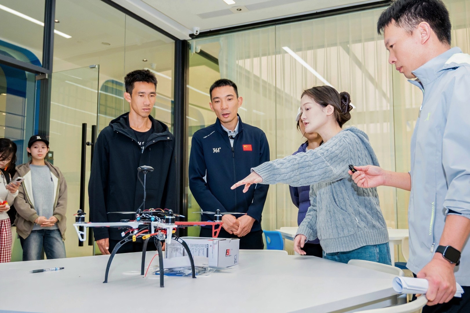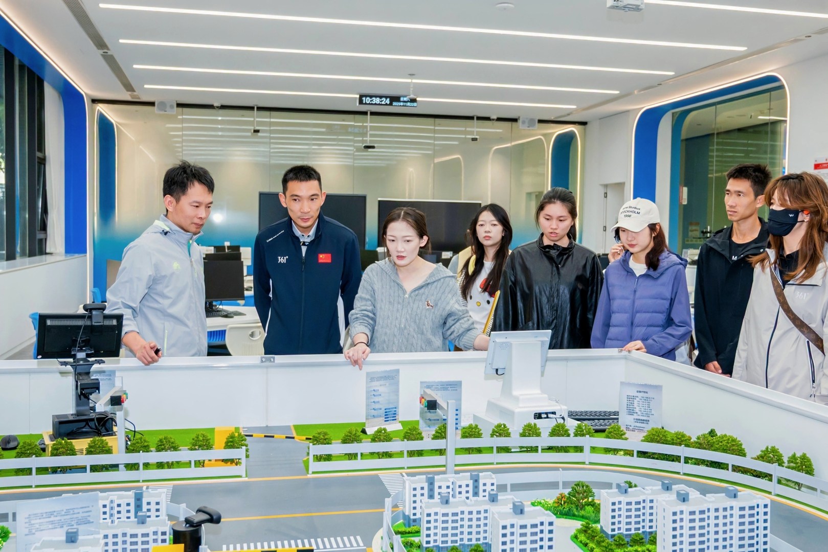 后续参观的智慧建筑与建造产业学院,负责教师为精英跑者们详细介绍了学校与广联达共建的“五融合”人才培养体系——将思政、理论、技能、科研与创新全面融入教学全流程。人工智能产业学院的生态展厅、AI研发中心与低空经济实验室,则让跑者近距离感知智能科技的应用前景。