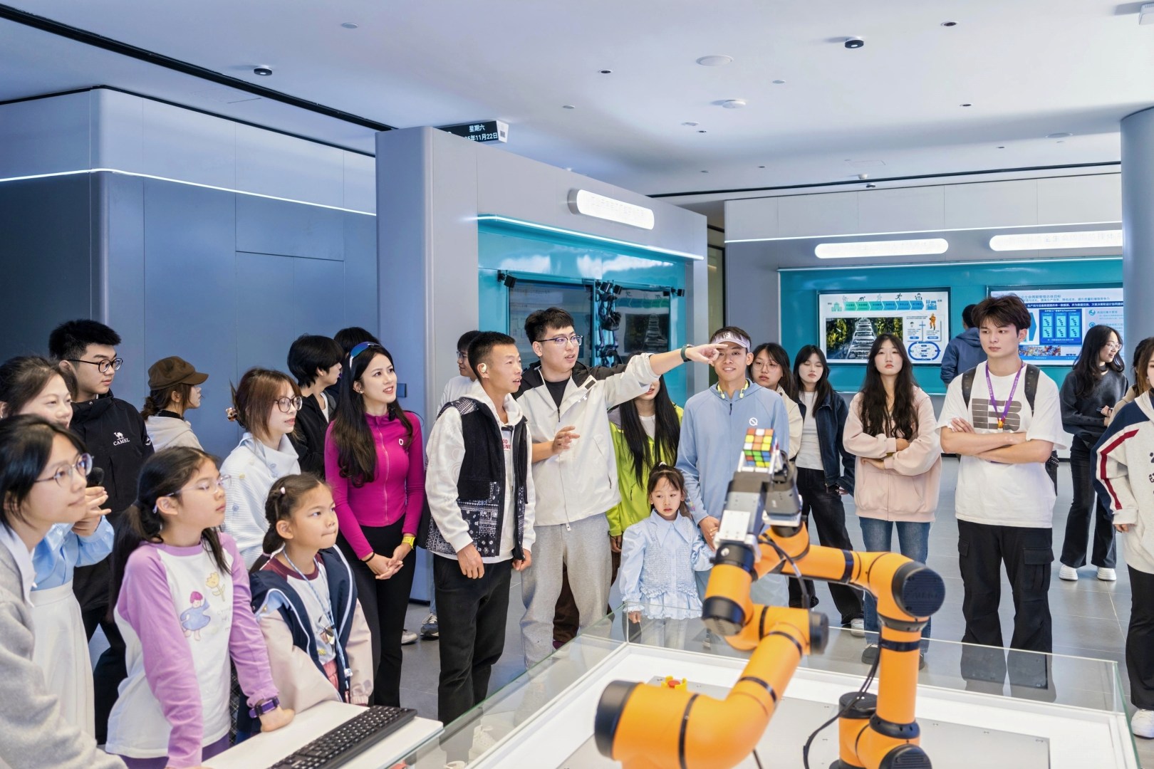 赛前,精英跑者团队走进学校多个产业学院实地参观,从体育产业学院出发,依次走访智慧建筑与建造、人工智能、工业智造、数字经济、跨境电商、数智传媒、鸿蒙智能物联等教学实践平台。
