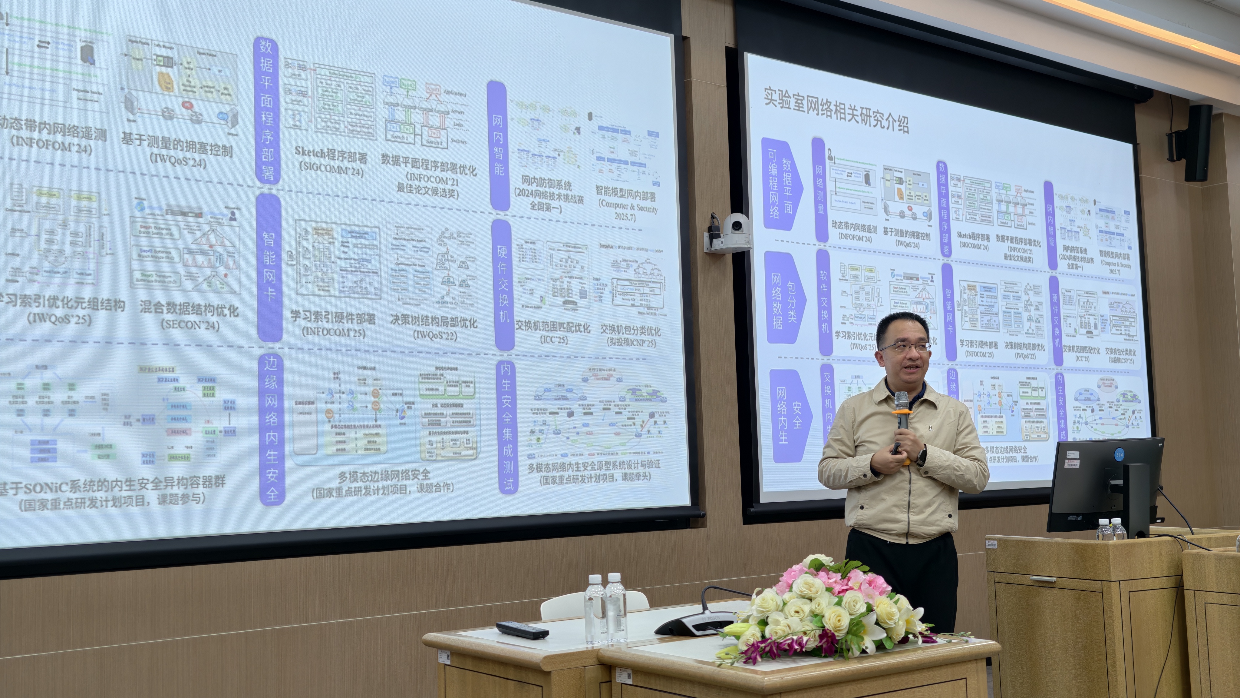 随后,张栋教授从医学、可编程网络、化学三个领域介绍AI的赋能实践案例与积极助力作用。在医学领域,张栋教授介绍了与福建省妇幼保健院、浙江大学医学院附属第一医院等合作的系列成果,这些成果印证了AI在提升医学诊断效率与准确性上的核心价值;在可编程网络领域,张栋教授详解了AI赋能网络测量、程序部署及安全防御的创新实践;在化学领域,张栋教授分享了从文献中解锁化学知识的瓶颈、多模态推理大模型自动提取特定领域特征等内容。