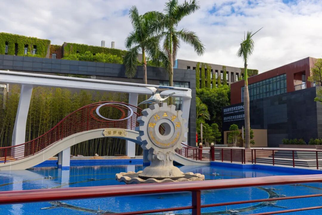 园内绿荫环绕,棕榈挺拔,竹影婆娑,四季皆景。藤蔓攀附的建筑与现代楼宇在背景中交织,既体现工科院校的理性秩序,又洋溢着生态自然的灵动气息。这里不仅是师生漫步休憩、激发灵感的活力空间,更是一个能够驻足凝望、驰骋思考的精神场所。