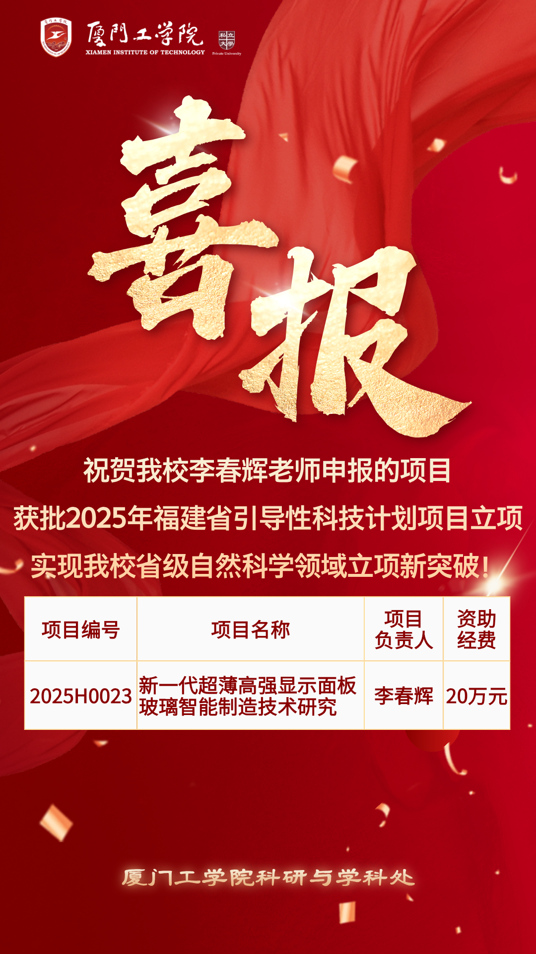 省级科技计划项目实现“零突破”:首次成功获批“2025年福建省引导性科技计划”项目。该项目的获批,填补了我校在省级科技计划项目领域的空白,充分证明了我校在应用技术研发和基础应用研究领域的潜力得到了省级层面的肯定,科研竞争力不断提升。
