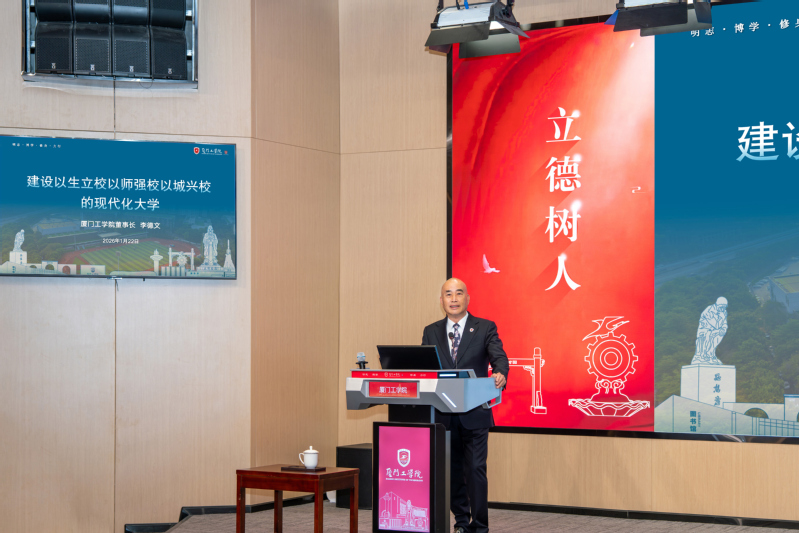 最后,李德文董事长解读了厦门工学院2026年度八项战略要事,为新一年发展锚定方向、凝聚力量。他表示,人工智能时代机遇与挑战并存,号召全体师生员工团结一致、坚守信念、抢抓机遇,秉持“以生为本,以师为魂,以城为翼”的发展目标,让"师、生、城"三者相依相生,奋发图强,推动学校实现卓越发展。