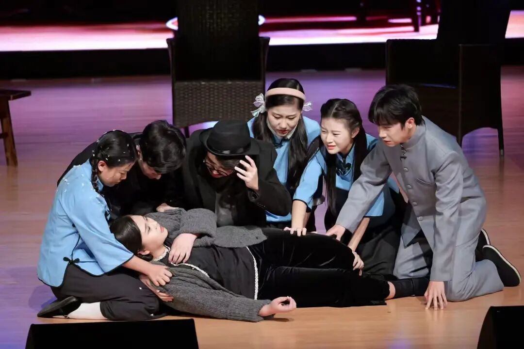 舞台上的每一个细节,都凝聚着团队的匠心。民国篇章中,梁教授与师娘临终告别的“抬手”动作,直至演出前一周才最终敲定。有人认为抬手更能体现不舍,有人觉得无动作更显决绝,也有人担心临场记忆失误……大家反复争论、反复调整,最终在排练中达成共识。