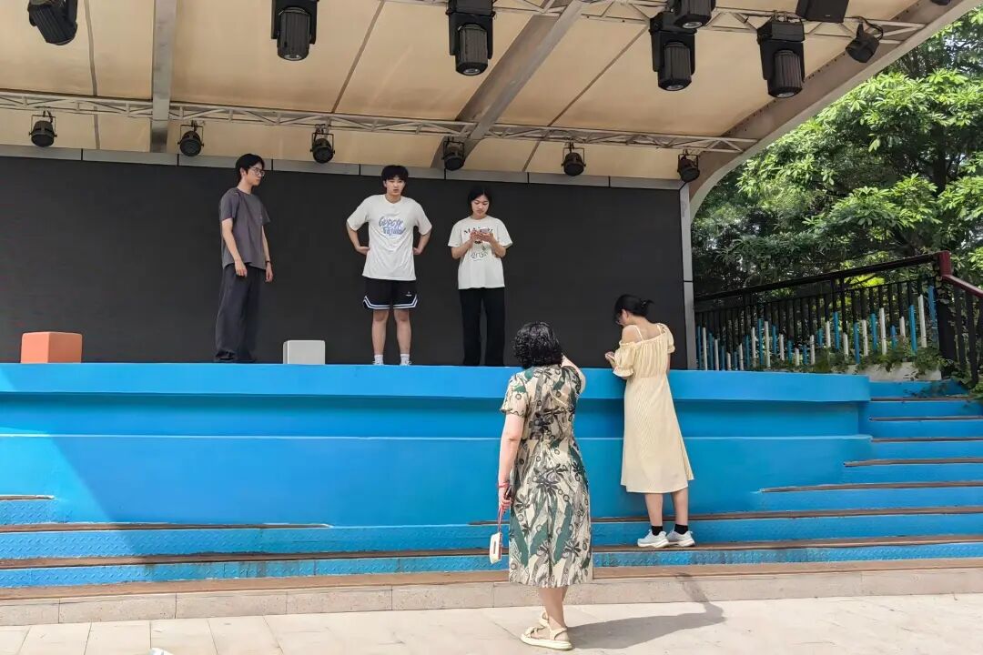 “10月的厦门依旧酷热难耐,同学们在音乐港的露天场地排练,太阳晒得人睁不开眼。陈颖老师始终守在台下,一站就是两个小时,衣衫早已被汗水浸透。就连旁边春山咖啡的店员,都被这份执着打动,主动为大家送来了饮用水。” 邵燕老师动容地说。