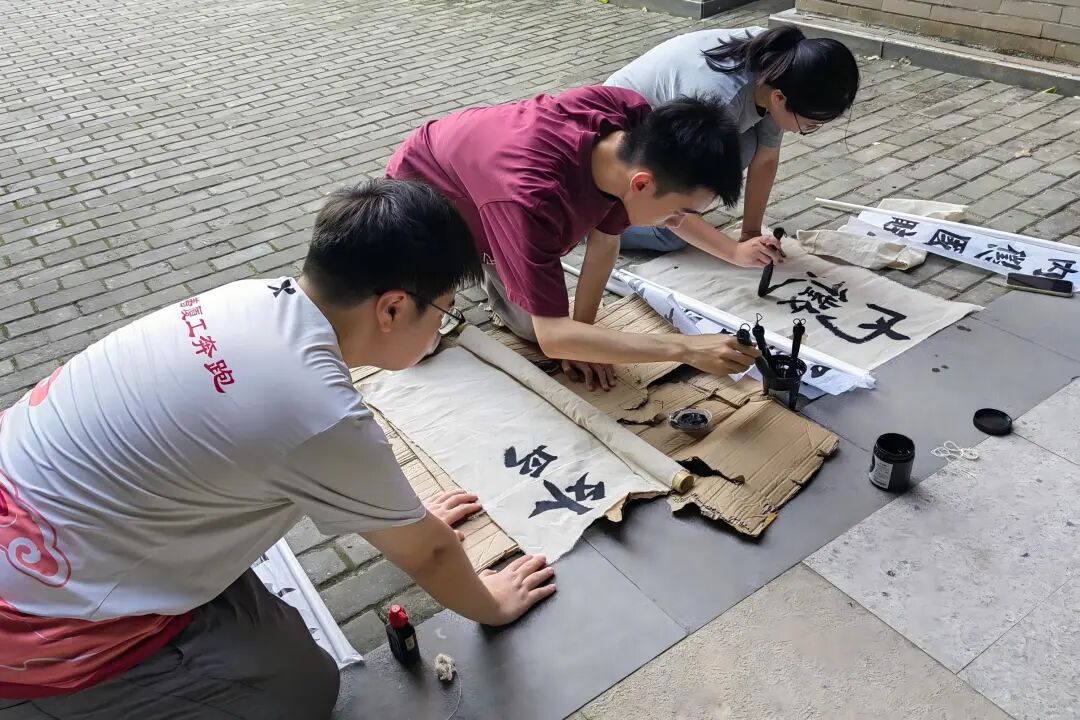 为了不弄脏后台场地,同学们就直接趴在地上书写革命横幅;演出服不小心破了,负责服装的刘嘉欣同学便一针一线细心缝补;三个年代的道具繁杂又多样,道具组康致烽、王华龙等同学一遍遍询价、采购、清点,把每一件道具都准备得妥帖周全;每场演出开场前三小时,幕后团队便已就位,熨烫服装、检查道具,事无巨细保障演出顺利进行……这些幕后英雄们的默默付出,指导老师们都看在眼里,记在心里。