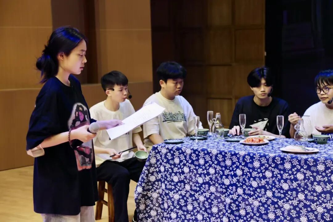 指导老师邵燕一翻开剧本初稿就意识到,这些故事不只是戏剧情节,更是一堂生动的“行走的思政课”。“能让这些00后青年在剧本创作、话剧排演过程中逐步理解、读懂、践行‘青年何为’这个时代命题。”她说。