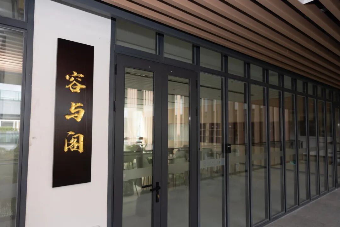 容与阁(智联思维漫谈室):图书馆三楼的容与阁是用于促进师生之间的情感联系与思想互动的休闲空间。空间内合理分布着舒适的休闲区、便捷的茶水台与安静的阅读角。暖色调的运用、柔和的灯光以及布艺、原木等耐久材质,共同营造出轻松愉悦的环境。