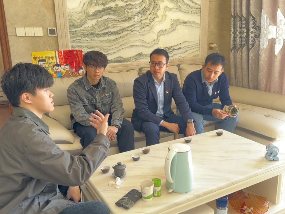 交谈中,学院党委代表学校及学院向黄君超同学表达谢意与关心;黄君超同学亦感谢学校与学院多年悉心培养,特别提到“党员的身份”让他更深刻地学会奉献、懂得担当,称这份成长是人生宝贵收获,未来将继续保持这份赤诚,也会带动身边人关注公益,不辜负学校与学院的期望。