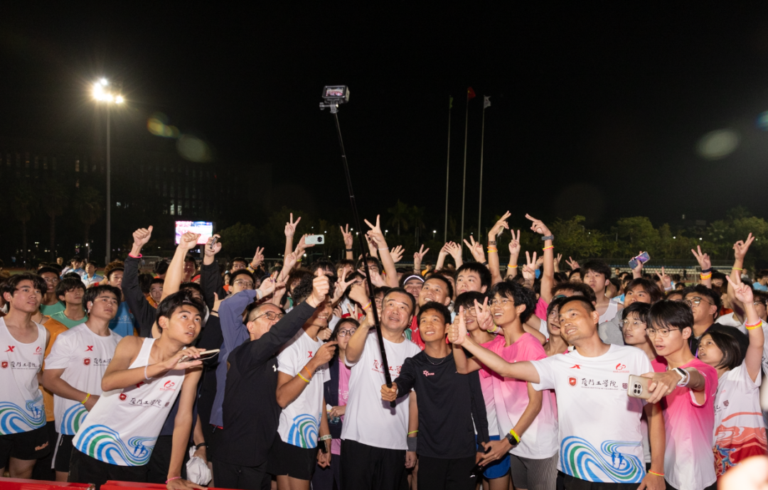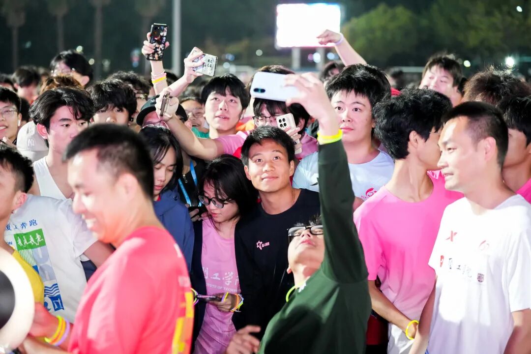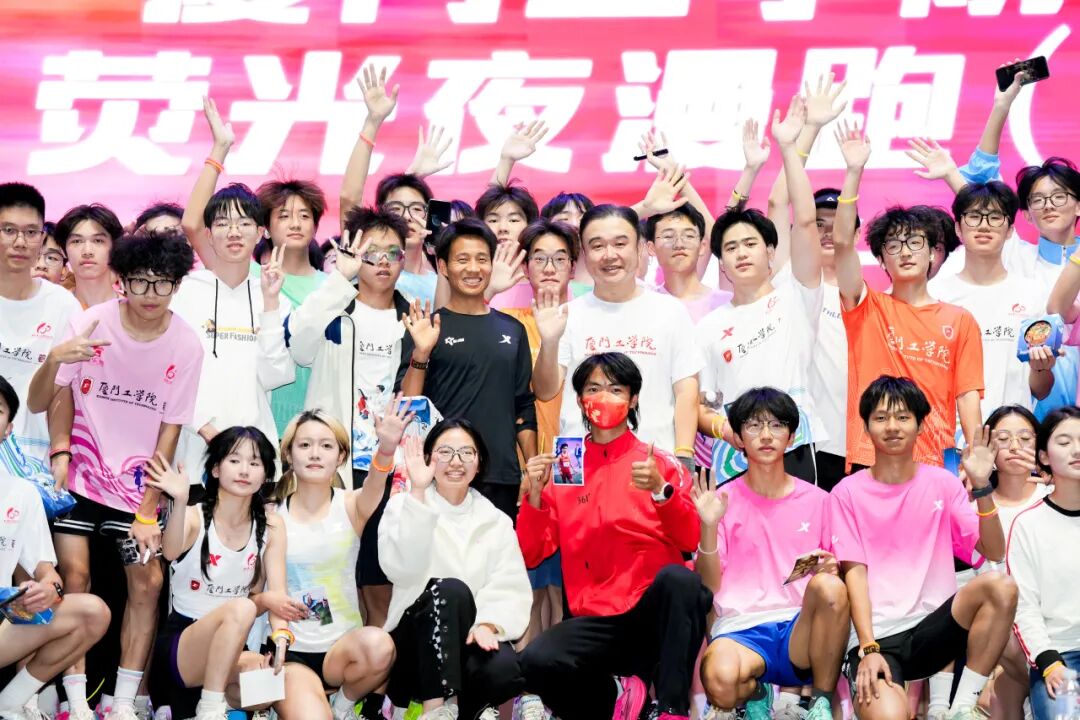 2025年12月8日晚,厦门工学院校园内荧光闪烁、活力涌动,中国马拉松男子纪录保持者、亚运会与全运会双料冠军、厦门工学院体育运动导师何杰闪现校园,领跑百名师生环校夜跑,享受运动。