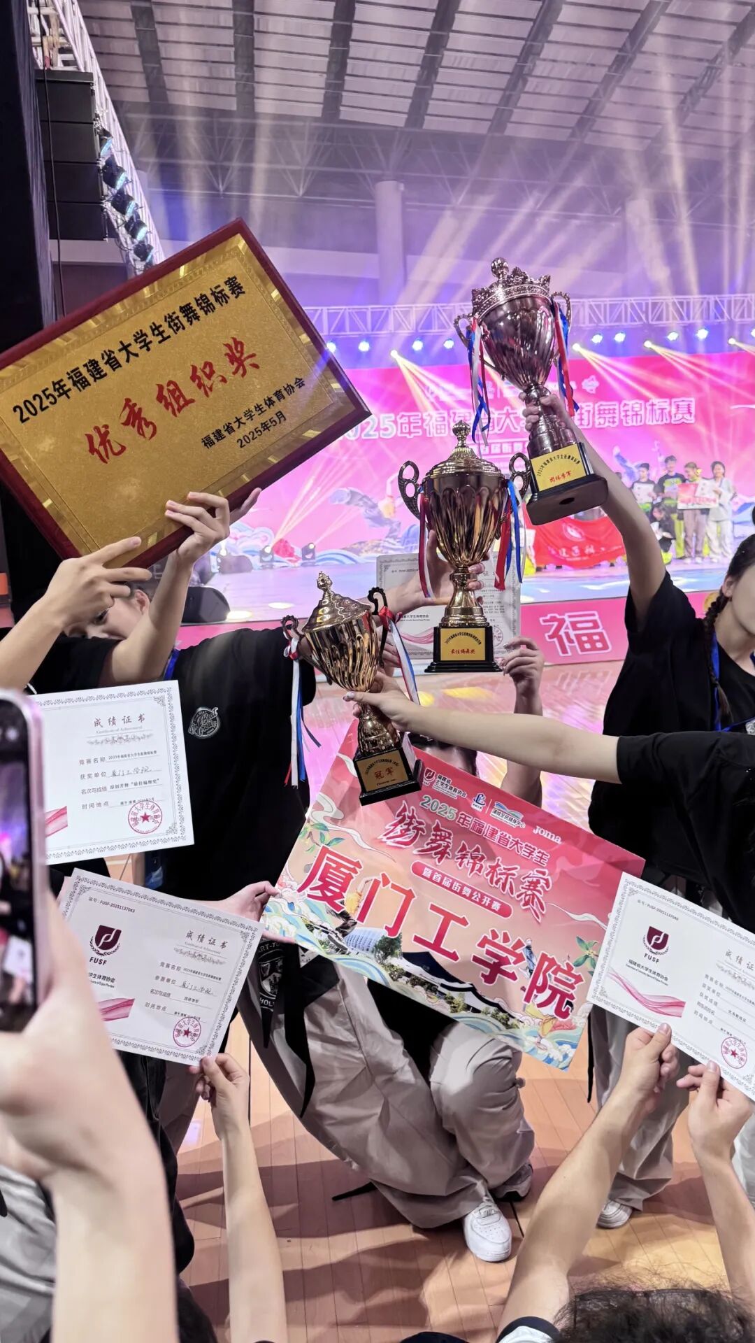 这份“坚韧务实”的精神最终化为了惊人的爆发力。在第二天的原创齐舞(大集体)比赛中,队员们将所有的不甘化作那一刻的极致释放,最终斩获全场最高分9.0分。从低谷到巅峰,林晓玥、陈偲琦、李沛远、蔡映姿、侯星竹、陈怡婷、张云天与团队成员一起,用实际行动证明了:厦工的街舞人,不仅能跳出潮流的舞步,更有着扛得住压力的脊梁与拥抱挑战的“大心脏”。如今,他们更是通过拍摄融合校园特色的“爆款”短视频,让One Beat街舞社成为校园文化的一大潮流风向标。
