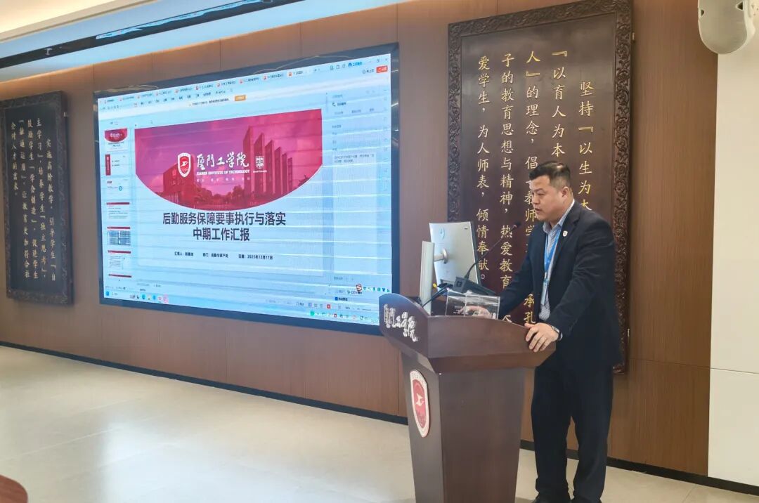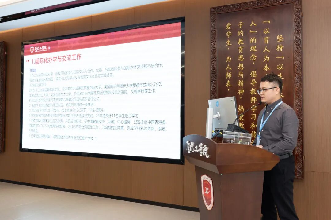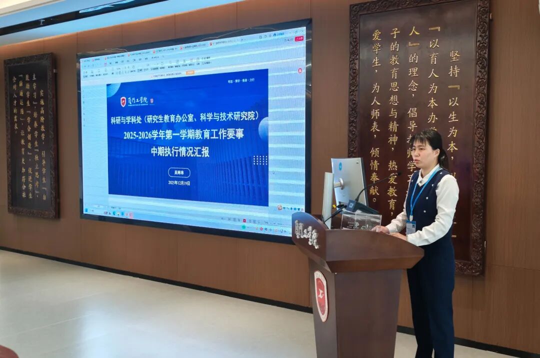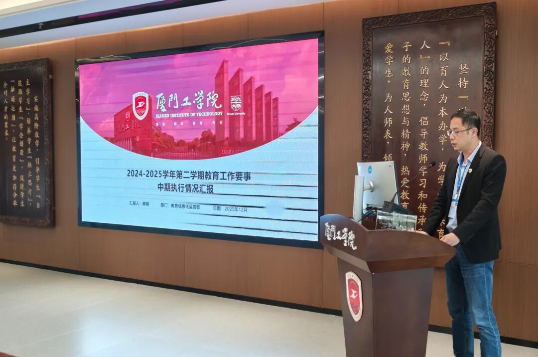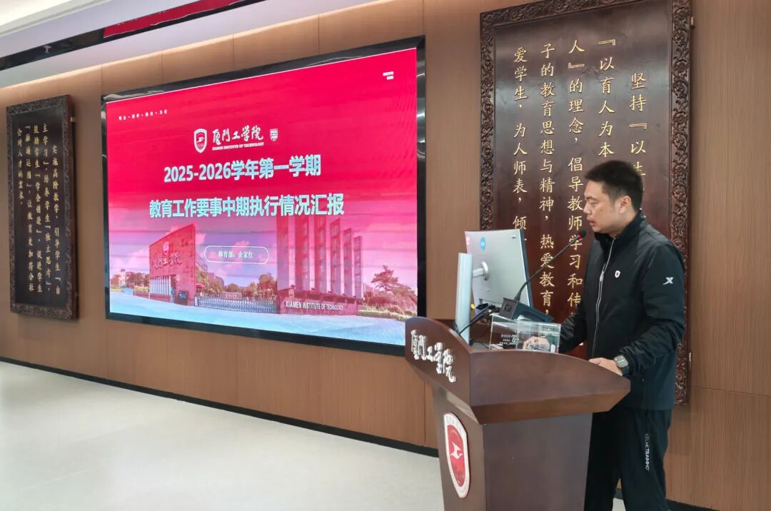 随后,学校要事执行办公室主任蓝素端汇报了本学期教育工作要事中期整体开展成效,深入剖析了目前执行过程中存在的任务分解精准度不足、跨部门沟通不畅等难点,并进一步明确要重视过程性、阶段性工作总结、加强校院两级沟通联动等具体要求。
