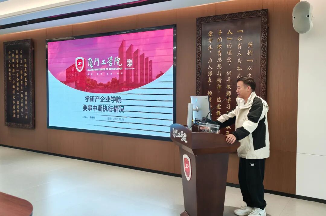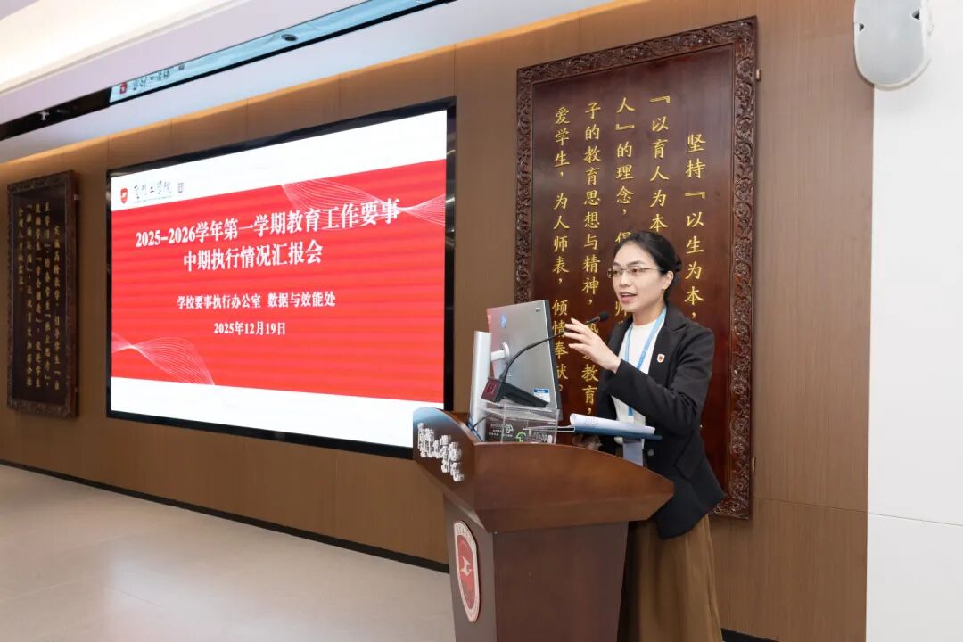2025年12月19日上午,我校召开2025—2026学年第一学期教育工作要事中期执行情况汇报会。苏涵校长,李雄虎副董事长、执行校长,张凯副校长,李文副校长,各二级单位负责人、学校绩效考核小组全体成员,以及学校要事执行办公室、数据与效能处相关成员共50余人参会。