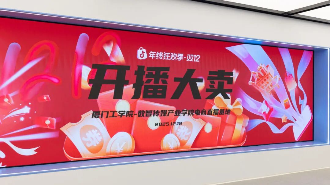 2025年12月12日,开播仪式在怀德大厦3楼隆重举行,厦门工学院副董事长、执行校长李雄虎与企业嘉宾共同揭幕,标志着直播间正式投入市场运营,“课堂与职场无缝衔接、教学与产业同频共振”的育人新模式全面落地。从筹备到开播再到订单爆发,短短数日时间,师生团队高效推进,展现了产教融合项目的强大执行力与市场适配力。