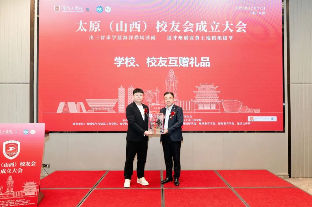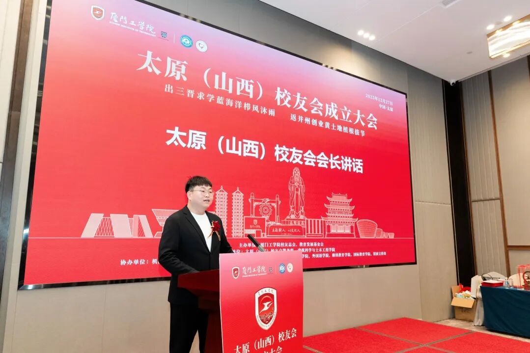 张月皓会长向远道而来的学校领导、老师致以诚挚感谢。他提及,在厦门工学院的求学时光里,林荫道上的步履、社团活动中的热忱仍历历在目,母校不仅传授了专业知识,更塑造了校友们踏实敢拼的品格,这份校园记忆成为大家人生中珍贵的财富;如今各位校友扎根山西、深耕不同行业,而“厦工校友”的身份始终是彼此最深厚的联结。作为首任会长,他承诺将与校友会核心团队一同,秉持“凝聚校友、服务校友、回馈母校”的宗旨,用心策划行业分享会、校友联谊赛、校企对接会等各类活动,让校友会充满活力,同时尽力为校友排忧解难,让大家在太原感受到“家”的温暖。最后,会长再次感谢学校领导的关心支持,祝愿母校桃李满天下、华章永续,各位校友事业蒸蒸日上、生活幸福美满,厦门工学院山西校友会越办越好。