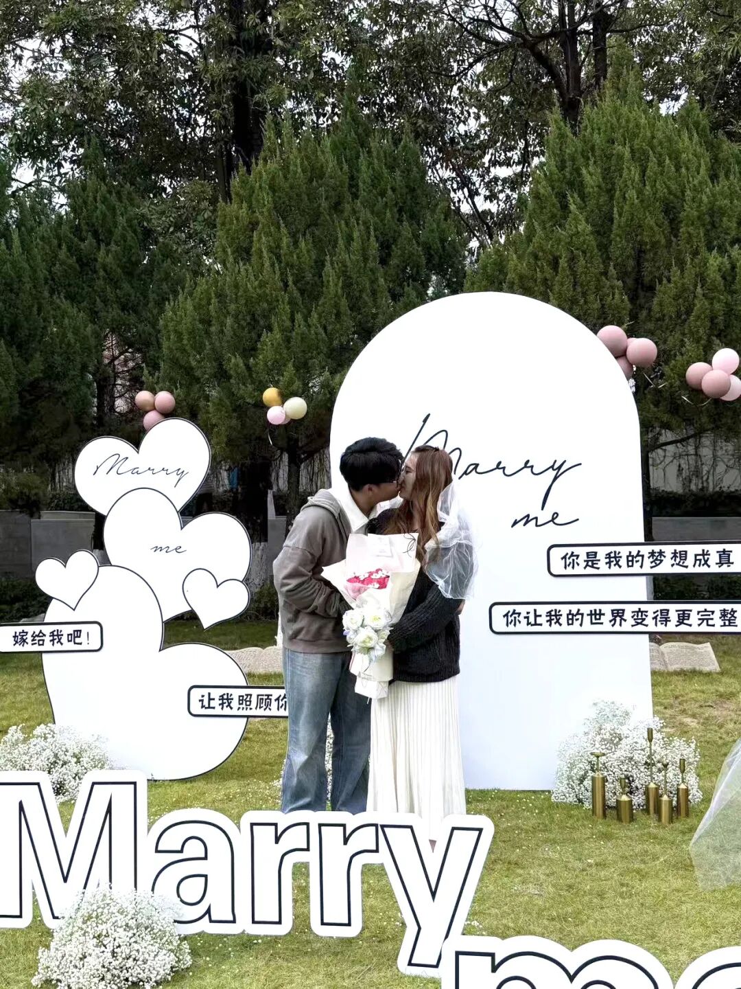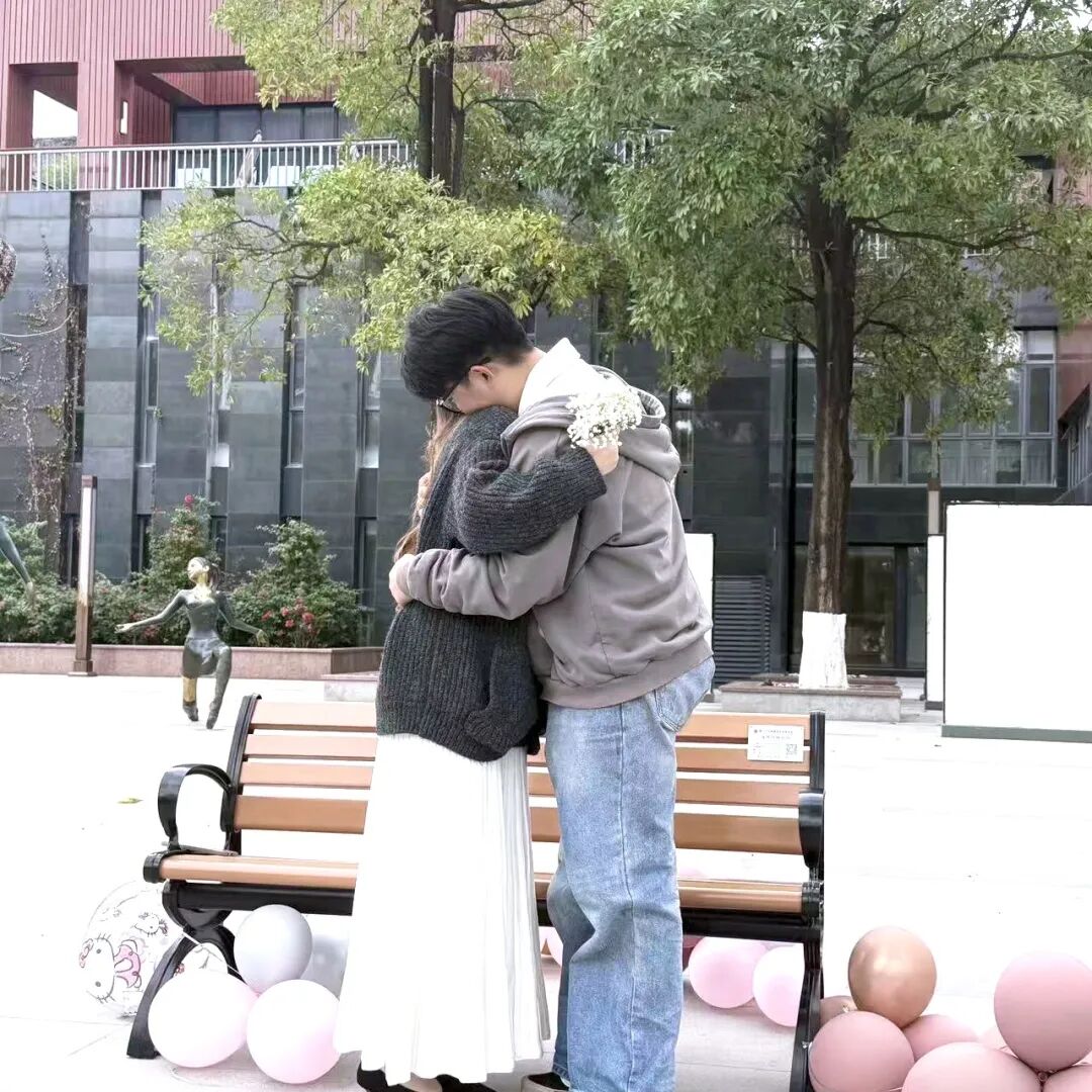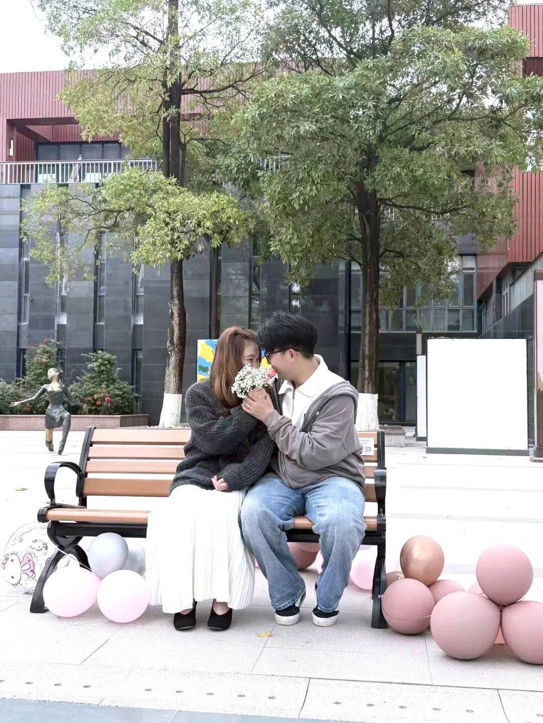 秦锦春学长:我和她第一次见面就是在学校的1号操场。那时我就想,以后有机会一定要和她在这里举办订婚仪式,所以才悄悄策划了这场惊喜。校园里处处有我们初识的回忆,这样的氛围格外适合承载美好,也特别有意义。