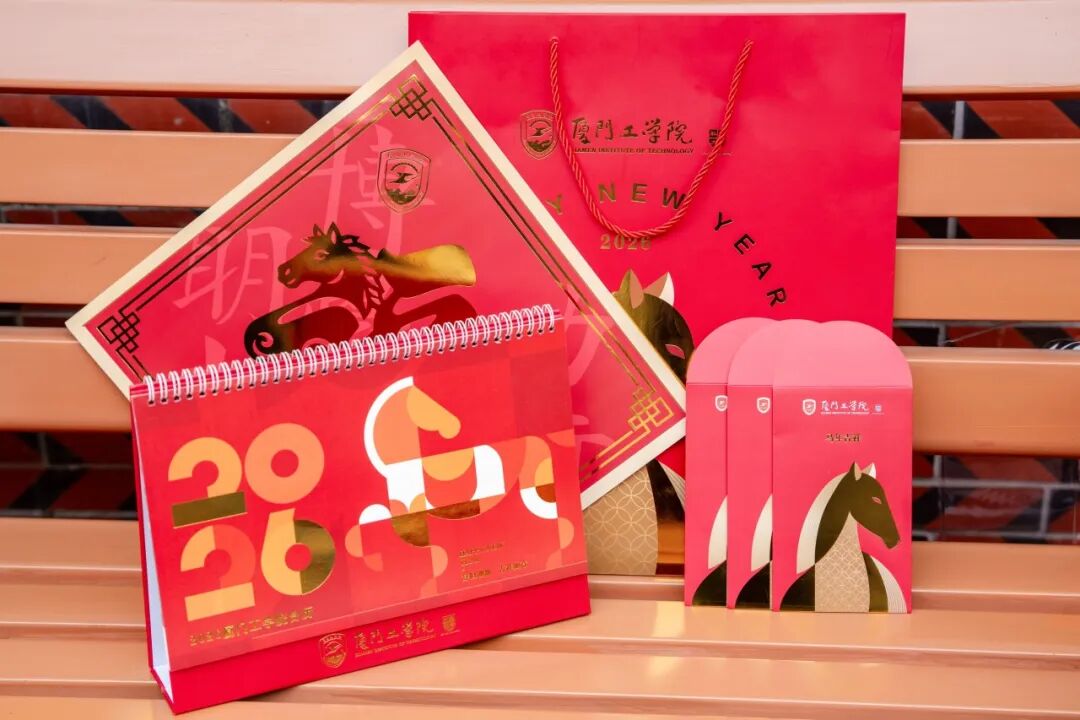 新春礼包承载满满心意,开启新一年的顺遂篇章。礼包内容丰富:喜庆的红包袋,是岁岁年年的温情馈赠,寄托好运常伴的期许;红彤彤的福字,是新春佳节的吉祥符号,点亮校园的年味氛围;2026年台历,是时光相伴的贴心伙伴,见证厦工逐光前行的脚步;精美的手提袋,让这份暖意随时相伴,将学校的关怀妥帖珍藏。