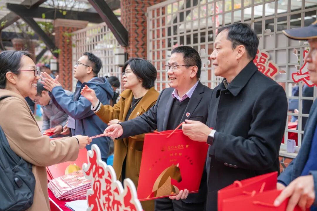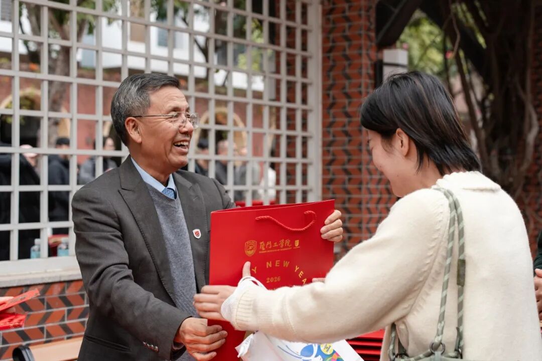 欢庆新岁时,共迎新进程。2026年1月21日中午,在董事会、校领导的关心指导下,在厦门工学院资产经营有限公司的大力支持下,厦门工学院2026年春节送祝福活动在卓尔园举行。苏涵校长,党委朱瑞元书记,李雄虎副董事长、执行校长,郭躬德副校长,娄红伟副校长,党委李文副书记等校领导莅临现场,为全体教职工送上新春礼包与美好祝福,传递学校的关怀与暖意。