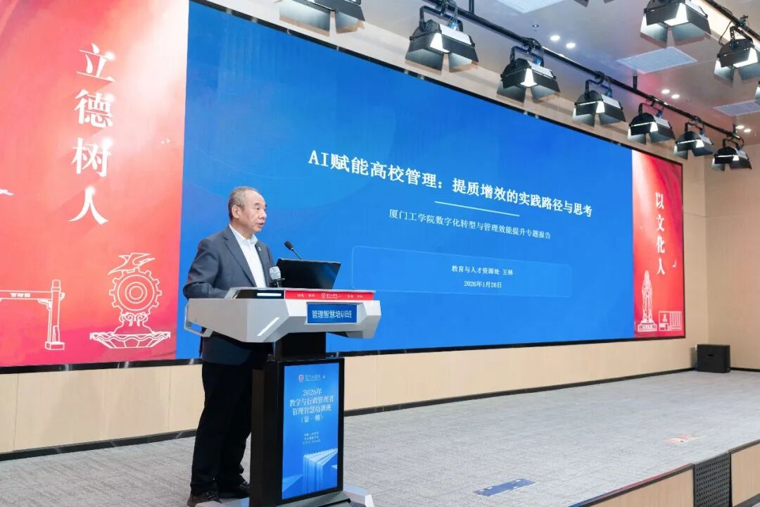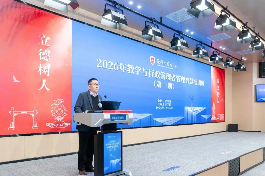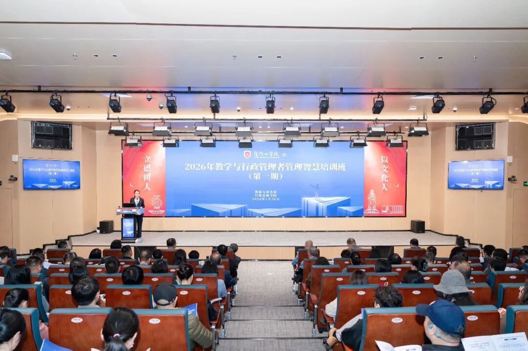 2026年1月26日上午,厦门工学院2026年教学与行政管理者管理智慧培训班(第一期)在立林学术报告厅正式拉开帷幕。董事会、校领导,各学院、行政及教辅单位全体管理者共180余人共同出席。培训班由郭躬德副校长主持。
