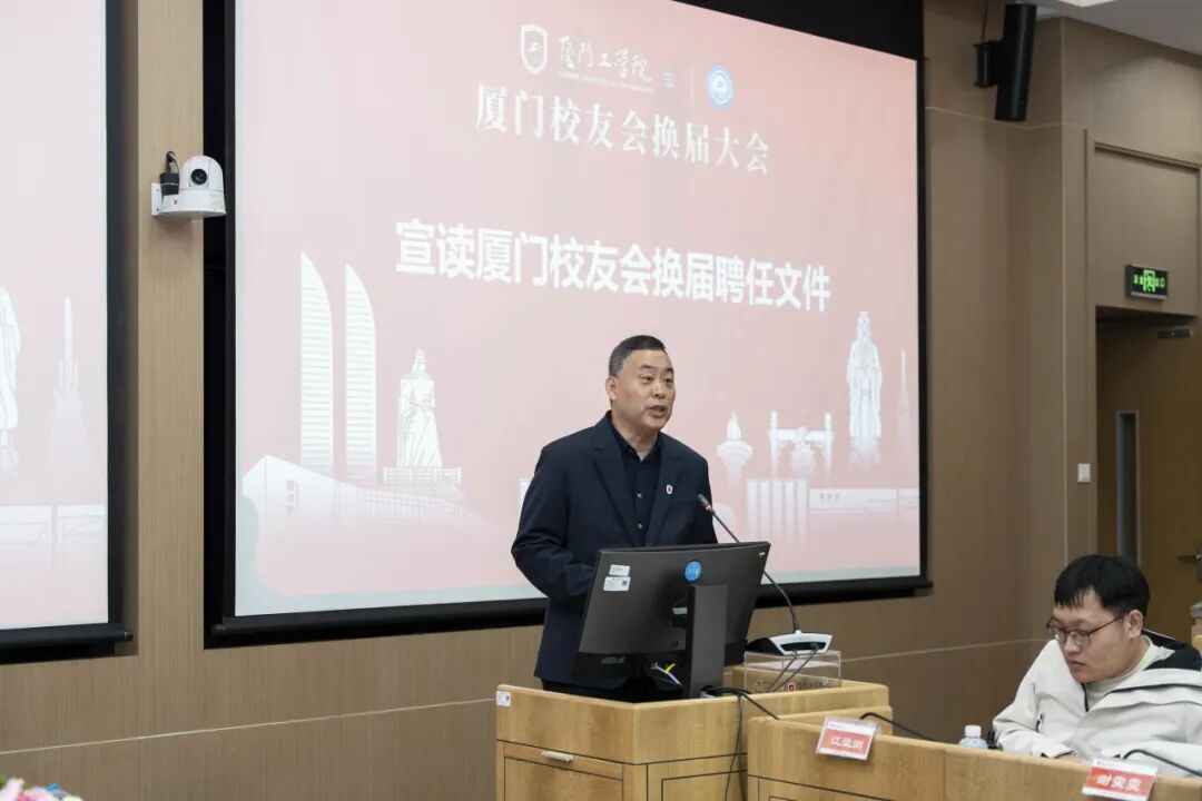 娄红伟副校长、校友总会副会长宣读厦门校友会换届聘任文件
