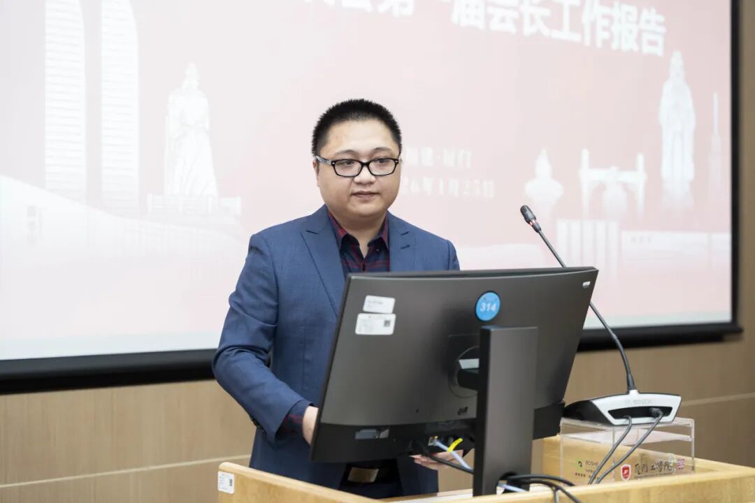 大会伊始,厦门校友会第一届会长:骆少东校友作工作报告。他简要回顾了第一届校友会的发展历程:在校领导支持与校友积极参与下顺利筹备成立,以搭建交流平台为核心,通过线上社群、线下活动及校际合作构建多层次沟通网络;搭建校友与母校双向沟通桥梁,组织校友回校分享、推动校企共建实习基地;积极履行社会责任,组织校友参与公益活动与疫情防控工作。最后,骆少东会长表达了离任的不舍与祝福,承诺将继续关注支持校友会发展。