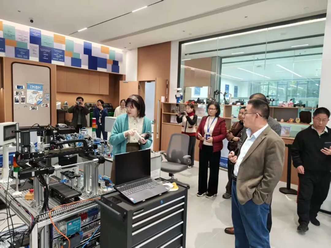 2月6日下午,在研修课程结束后,参训教师们走进学院实践基地,实地参观智能制造产线、5G工业互联网平台及新质工业创作坊等实践基地,详细了解了产业学院产教融合课程的建设机制及学生创新项目孵化流程。参训老师们认真聆听介绍、驻足观摩,就课程内容与产业实践融合、项目驱动教学实施、学生能力评价体系构建等关键问题展开热烈研讨,对产教协同育人模式有了更直观、深刻的认知与体悟。