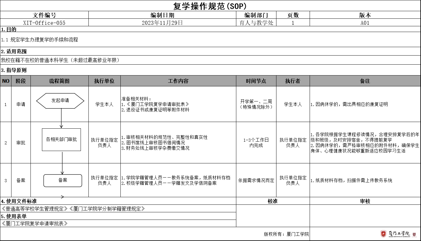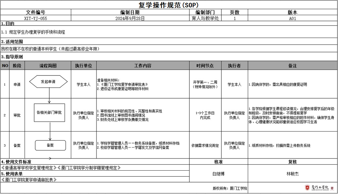 厦门工学院复学申请审批表