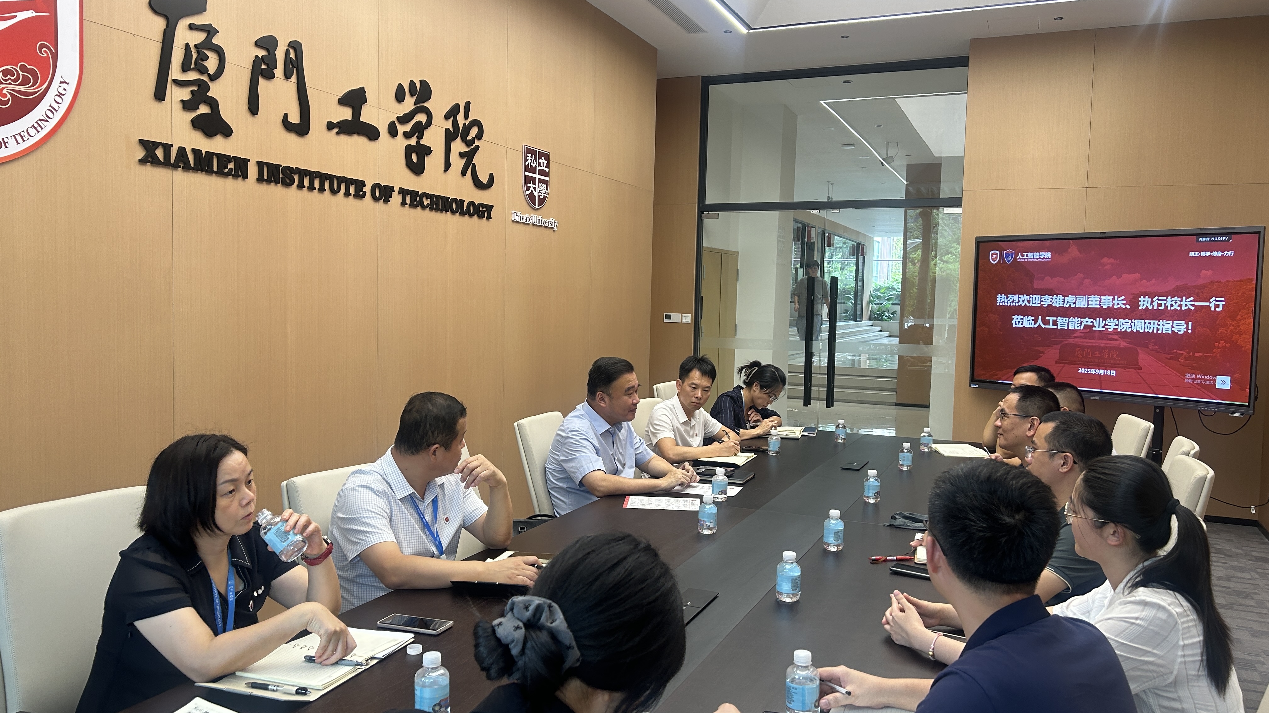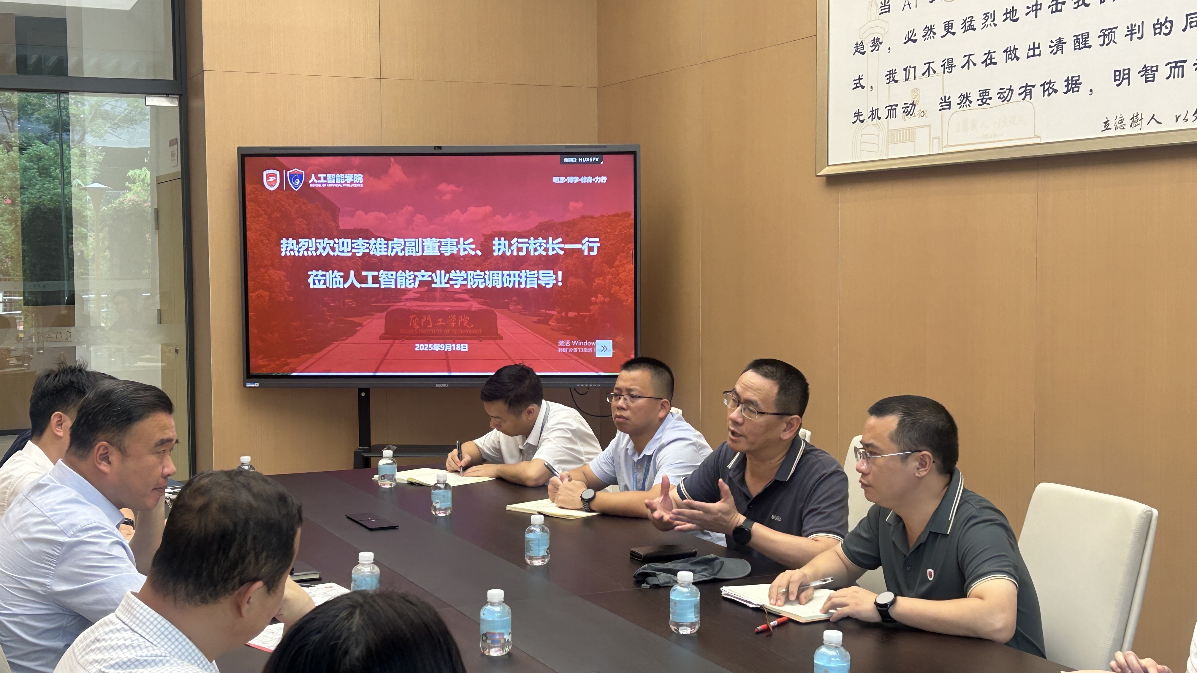 9月18日,李雄虎副董事长一行莅临人工智能产业学院开展调研工作。人工智能产业学院院长郭躬德、执行院长谢志春热情接待,陪同参观并参与座谈交流,双方围绕学院建设发展等议题深入探讨。