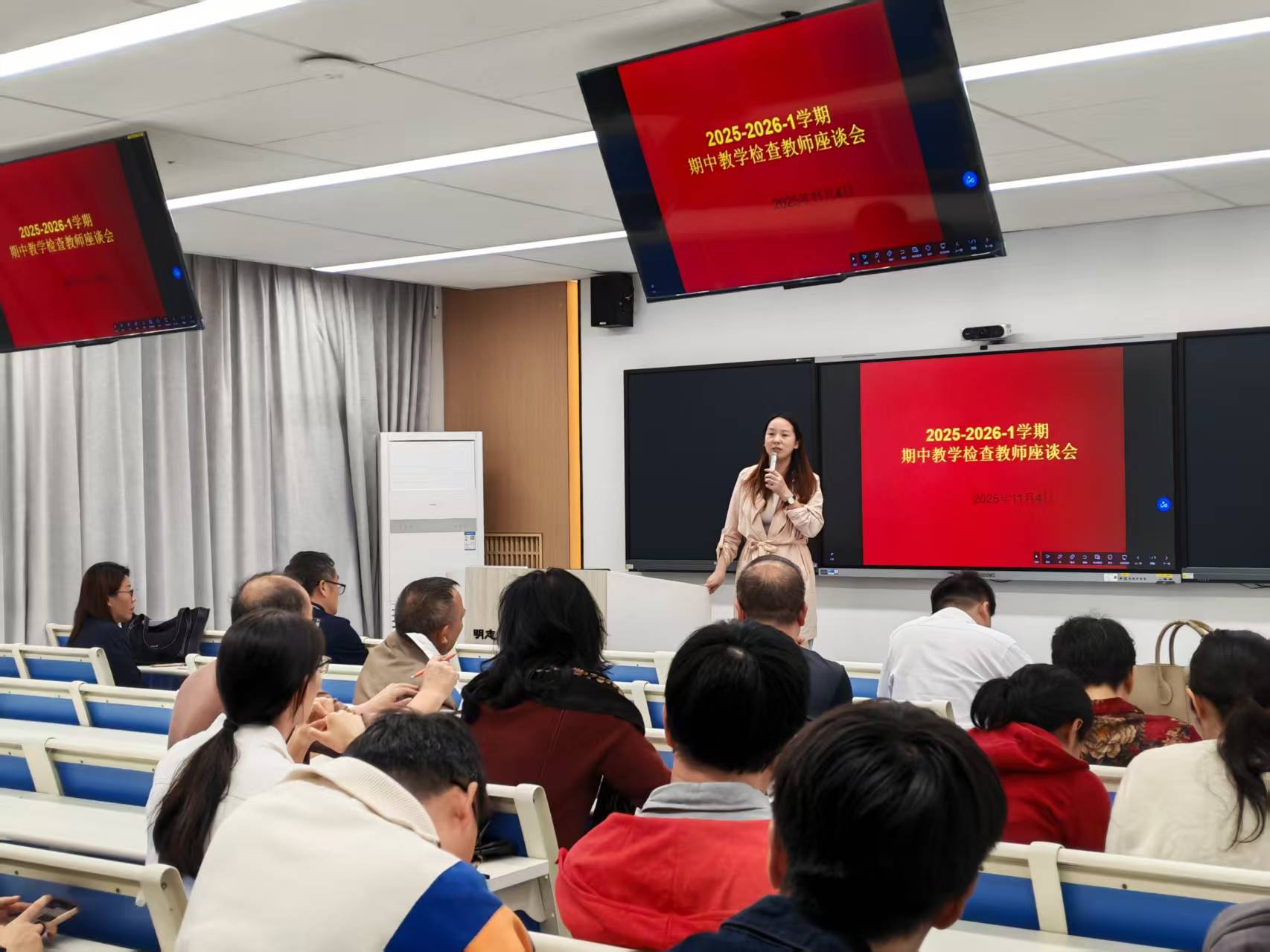 为进一步提升教学质量、优化教学管理,人工智能学院于2025年11月4日下午在正心大厦组织召开2025-2026学年第一学期期中教学检查教师座谈会。会议由课程组负责人主持,各专业及其公共课教师代表参加。