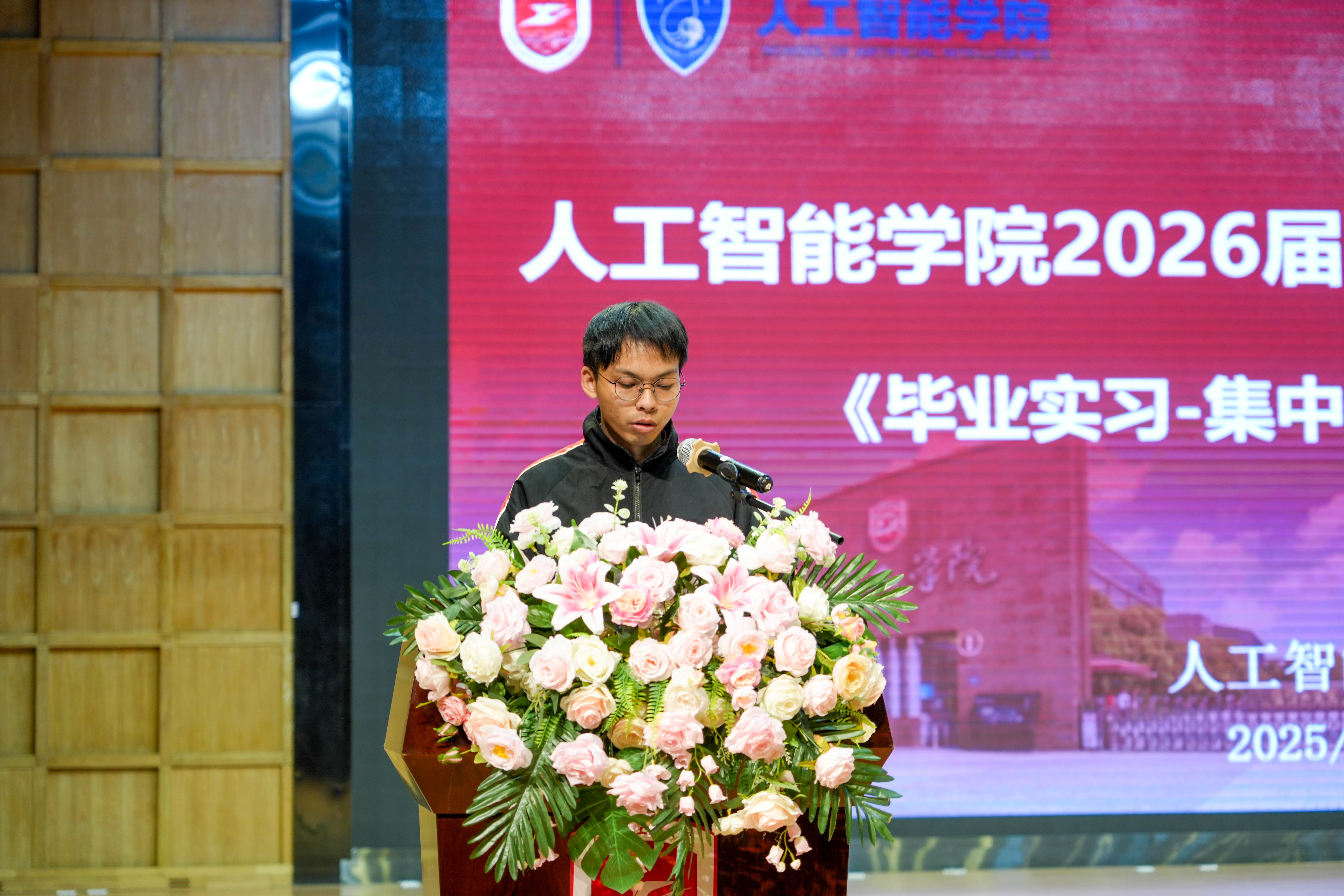 学术副院长王林教授强调了毕业实习的重要性。他要求同学们在企业实习中遵守规章、认真履职,主动积累实战经验,清晰规划实习目标与路径,确保实习任务高质量完成。