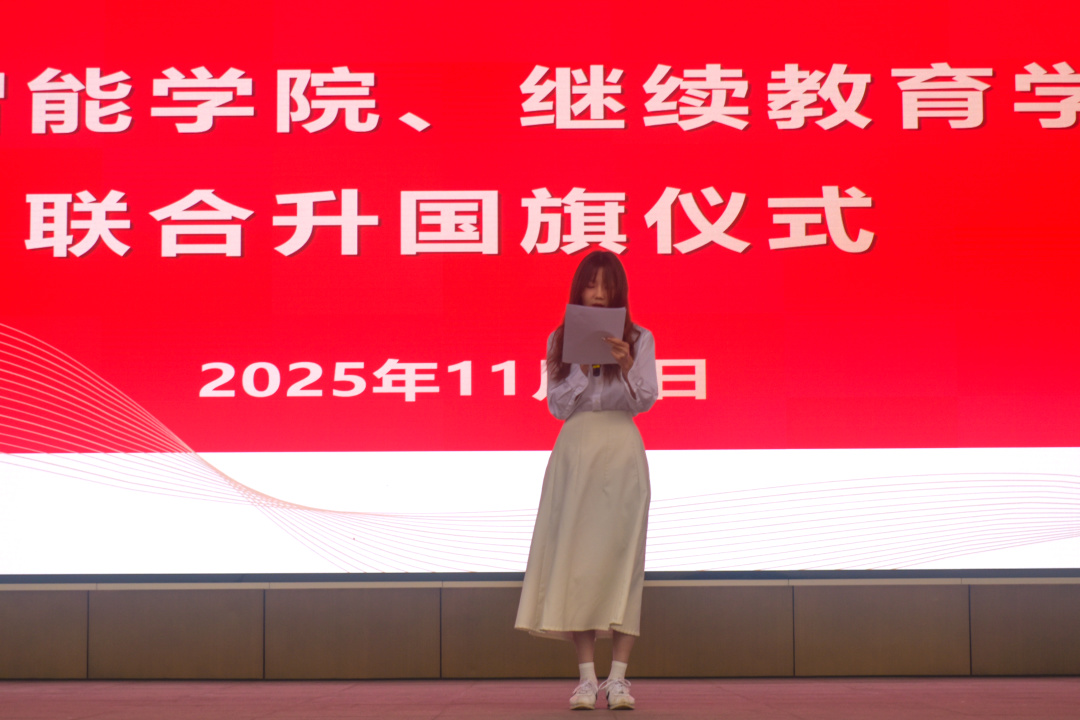 在这个阳光明媚,秋风和煦的深秋里。人工智能学院与继续教育学院的师生们早早齐聚操场。随着主持人的宣布下,人工智能学院与继续教育学院2025-2026学年第一学期升旗仪式正式开始。